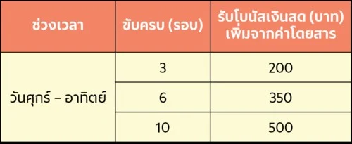 ในแง่ค่าตอบแทน ระบบค่าตอบแทนที่จูงใจให้คนเข้ามาทำงานเป็นไรเดอร์ให้กับแพลตฟอร์มส่งอาหารมักแบ่งออกได้เป็นสองรูปแบบ รูปแบบแรกคือค่าตอบแทนปกติเมื่อขับส่งอาหาร ซึ่งคิดเป็นค่าบริการแบบคงที่รอบละ 30 บาท บวกกับอัตราค่าบริการต่อระยะทาง เช่น 4.75 บาทต่อกิโลเมตร รูปแบบที่สองคือโบนัส ซึ่งมีทั้งโบนัสเงินสดที่คิดตามจำนวนรอบในการขับส่งอาหาร (ดังตัวอย่างตามตารางที่ 1 ด้านล่าง) และโบนัสจากการสะสมเพชร ซึ่งได้ตามจำนวนรอบ แล้วตีออกมาเป็นจำนวนเงิน เช่น การส่งอาหารได้ 1 รอบ คิดเป็น 5 กะรัต หากสะสมครบ 80 กะรัตภายใน 12 ชั่วโมง ก็จะได้โบนัส 175 บาท การให้โบนัสผ่านการสะสมรอบและการสะสมเพชรนี้เป็นเครื่องมือจูงใจให้คนขับทำรอบการส่งมากขึ้น โดยที่แพลตฟอร์มจะเปลี่ยนอัตราโบนัสไปเรื่อยๆ