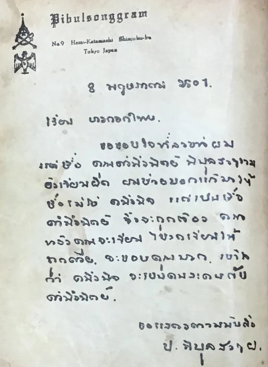 “ข้าพเจ้าไม่ได้มีภรรยาหลายคน ข้าพเจ้ามีภรรยาคือท่านผู้หญิงคนเดียว นอกนั้นก็มีผู้ที่รู้จักกันฐานเพื่อนอีกคนหนึ่ง คือ คุณคำนึงนิตย์ ได้มาอยู่เป็นเพื่อนที่โตเกียวและมีบุตรกัน นอกนั้นก็ไม่มีและไม่ได้ติดต่อเลี้ยงดูใครด้วย หมดเพียงเท่านี้”