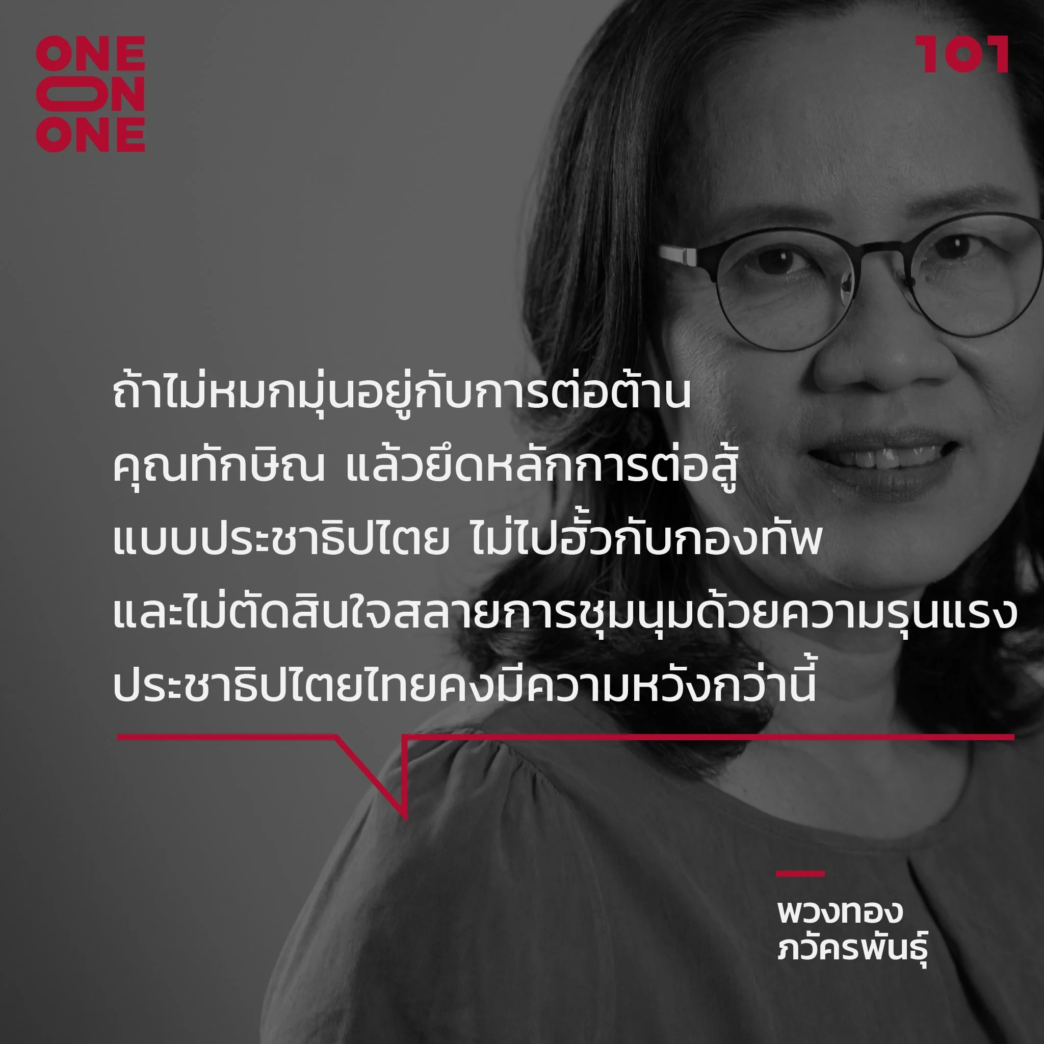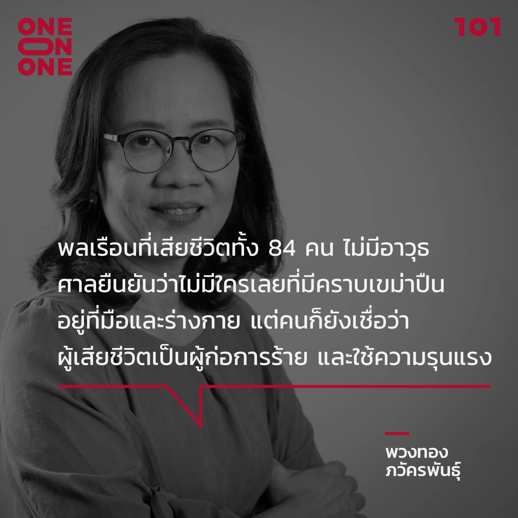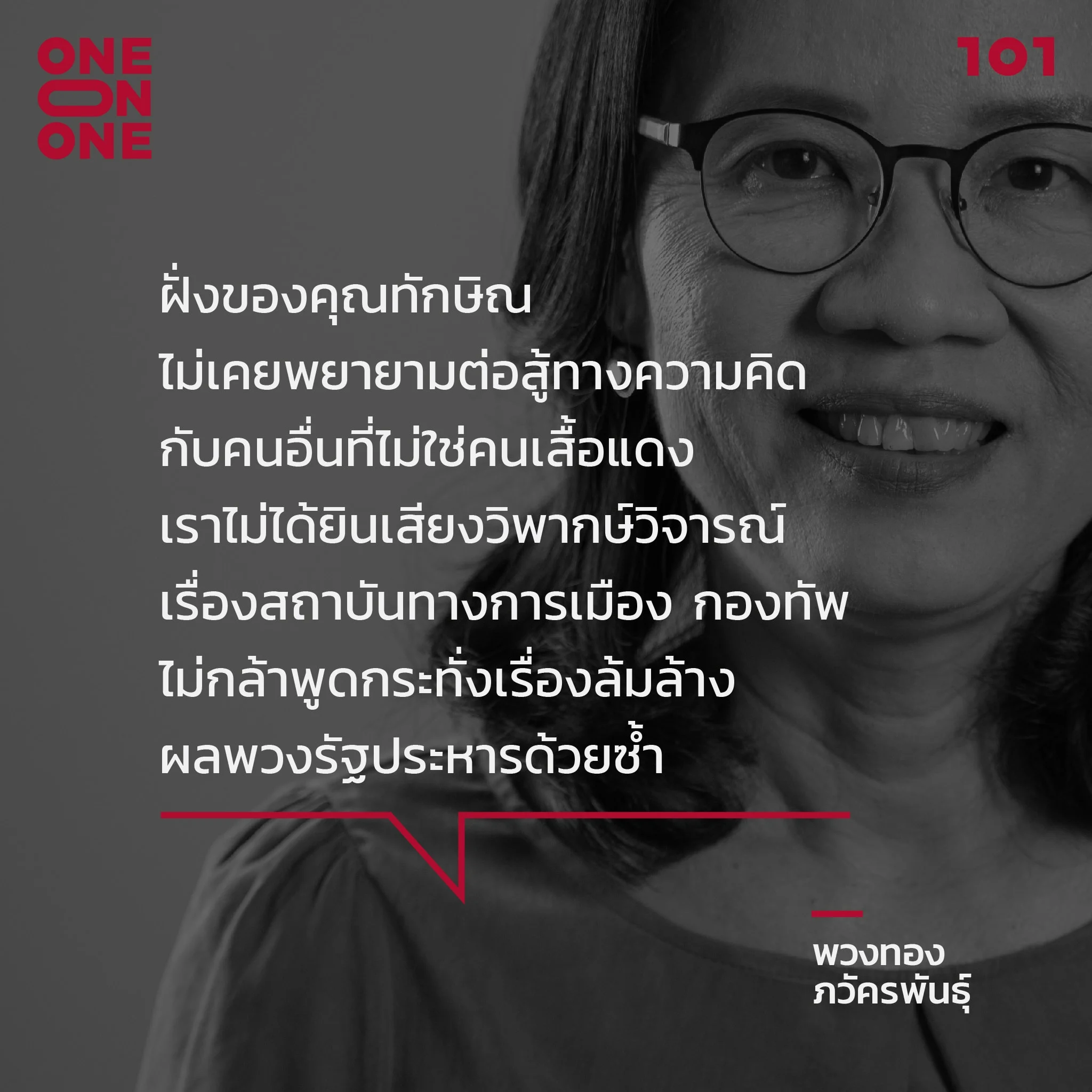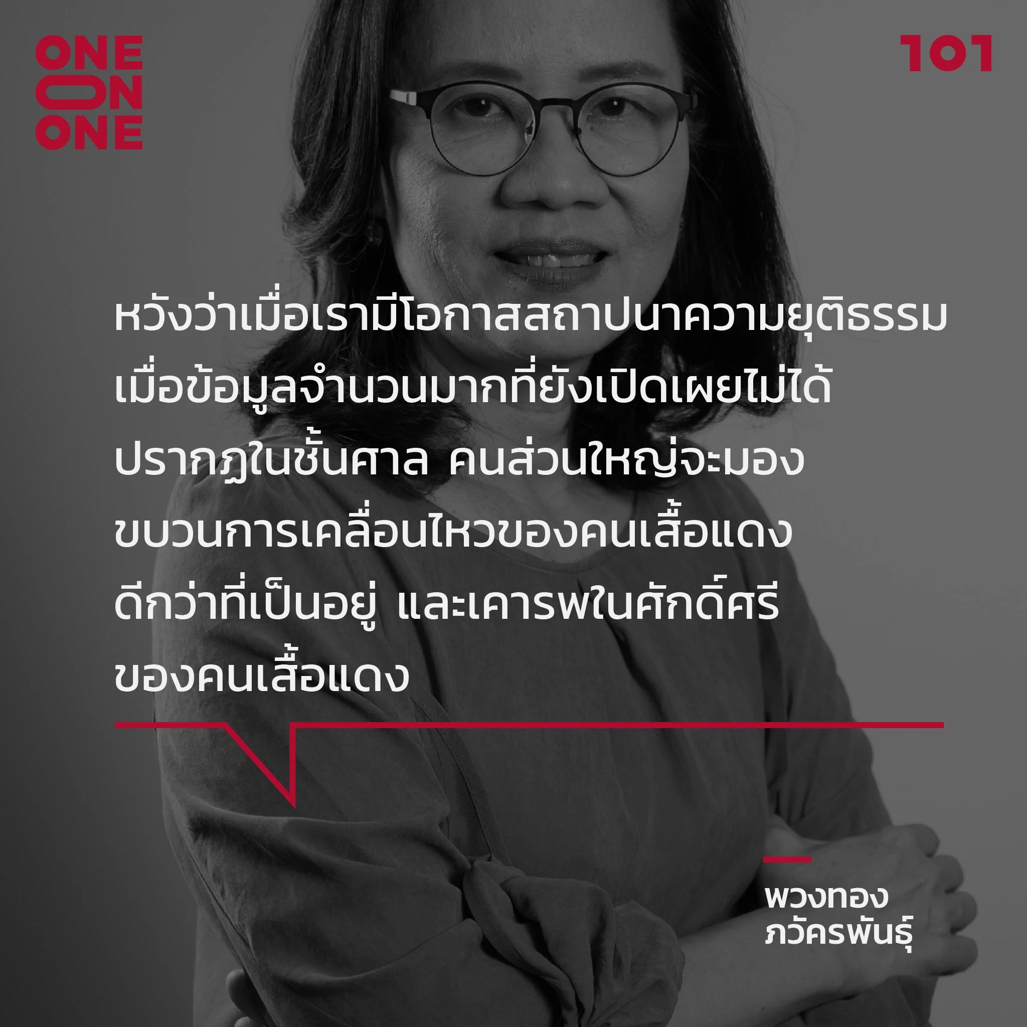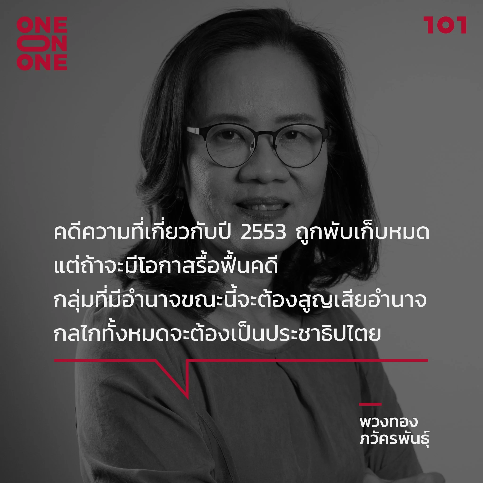 101 สนทนากับ รศ.ดร.พวงทอง ภวัครพันธุ์ จากคณะรัฐศาสตร์ จุฬาลงกรณ์มหาวิทยาลัย หนึ่งในทีมงานศูนย์ข้อมูลประชาชนผู้ได้รับผลกระทบจากการสลายการชุมนุม กรณี เม.ย.-พ.ค. 53 ในรายการ 101 One-on-One ep.141 : ‘1 ทศวรรษ ล้อมปราบเสื้อแดง ความตายปลุกความจริง’