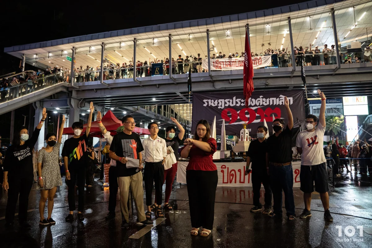 ในช่วงค่ำมีการอ่านแถลงการของกลุ่มราษฎรยกเลิก 112 โดย รุ้ง-ปนัสยา สิทธิจิรวัฒนกุล ก่อนที่รุ้งจะกรีดแขนตัวเองด้วยใบมีดเป็นเลข 112 และมีเครื่องหมายขีดฆ่า