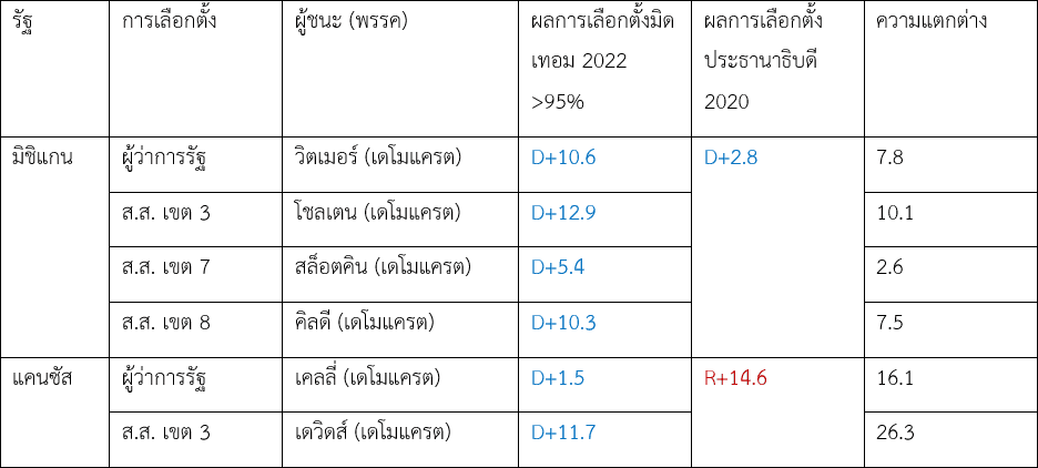 *ผลการเลือกตั้งมิดเทอม 2022 >95% จากการรายงานของนิวยอร์กไทมส์