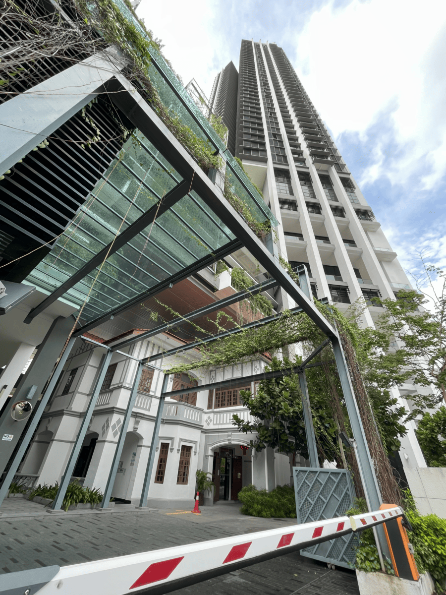 อย่างไรก็ตาม ในขณะนั้น คอนโดมิเนียมได้สร้างโครงขึ้นไปสิบชั้นแล้ว บ้านโนวาสโคเทียที่จำลองขึ้นมาใหม่จึงต้องแปะอยู่เป็นเปลือกด้านหน้าของอาคารคอนโดนิเนียมนั้นเอง ลักษณะแบบเดียวกันนี้พบได้ที่คอนโดมิเนียมอีกแห่งหนึ่งคือ Setia V Residence บนถนนเบอร์มา (Lorong Burma) อาคารคอนโดมิเนียมดังกล่าวสร้างคร่อมบ้านเช่าเดิมของพระยามโนปกรณ์นิติธาดา พระยามโนปกรณ์นิติธาดาเช่าบ้านหลังนี้เมื่อแรกมาถึงปีนังด้วยความช่วยเหลือของพระยารัษฎาธิราชภักดี (คอยู่จ๋าย) อนึ่ง บ้านหลังที่เห็นอยู่นี้ยังเป็นบ้านจริง ไม่ใช่บ้านที่จำลองขึ้นมาใหม่หลังจากถูกทุบทิ้งดังในกรณีของบ้านโนวาสโคเทีย