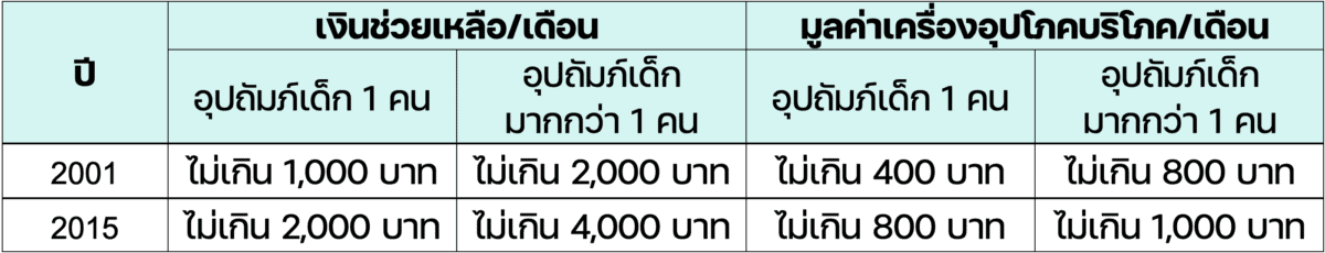 [25] คำนวณโดยนำค่าเพื่อชีวิตในครอบครัวที่มีบุตร 1 คน 1 วัน คูณกับตัวคูณสมาชิกในครัวเรือนทั้งหมด (2.3) /ตัวคูณสมาชิกที่เป็นเด็ก 1 คน(0.5)