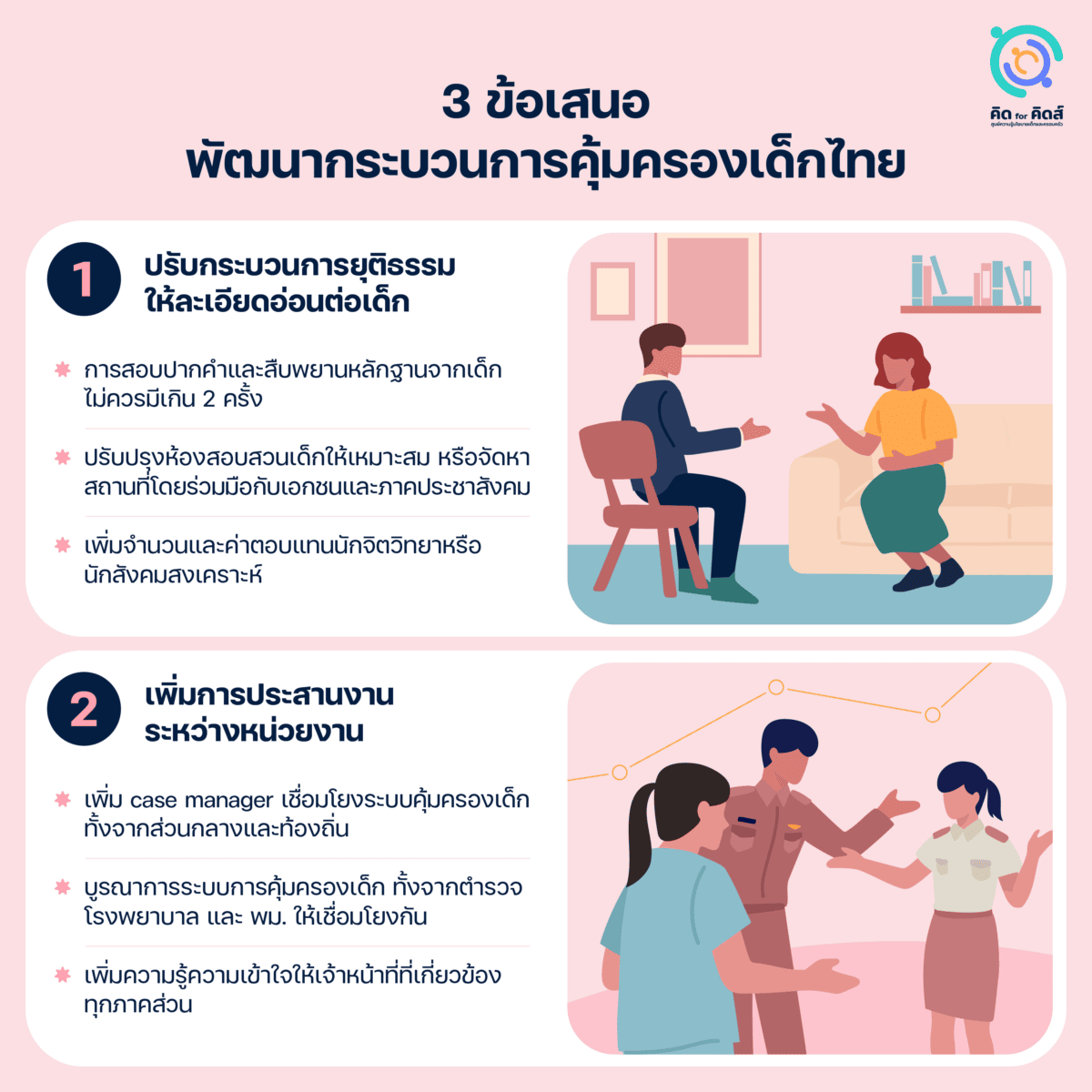 1. ปรับกระบวนการยุติธรรมให้ละเอียดอ่อนต่อเด็ก