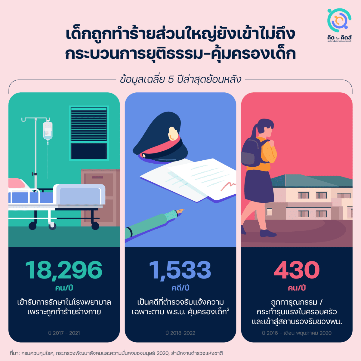 คิด for คิดส์ โดยความร่วมมือระหว่าง 101 PUB กับ สสส. ชวนสำรวจระบบคุ้มครองเด็กในประเทศไทย ว่าอะไรยังมีอะไรที่ขาดหายไปจนทำให้การคุ้มครองเด็กไม่เป็นไปอย่างราบรื่น อะไรที่ตกหล่นจนทำให้ระบบคุ้มครองเด็กไม่ได้คุ้มครองเด็กสมชื่อ และอะไรที่ต้องเพิ่มเติมเพื่อให้เกิดประโยชน์สูงสุดกับเด็กที่อยู่ในระบบคุ้มครองเด็ก