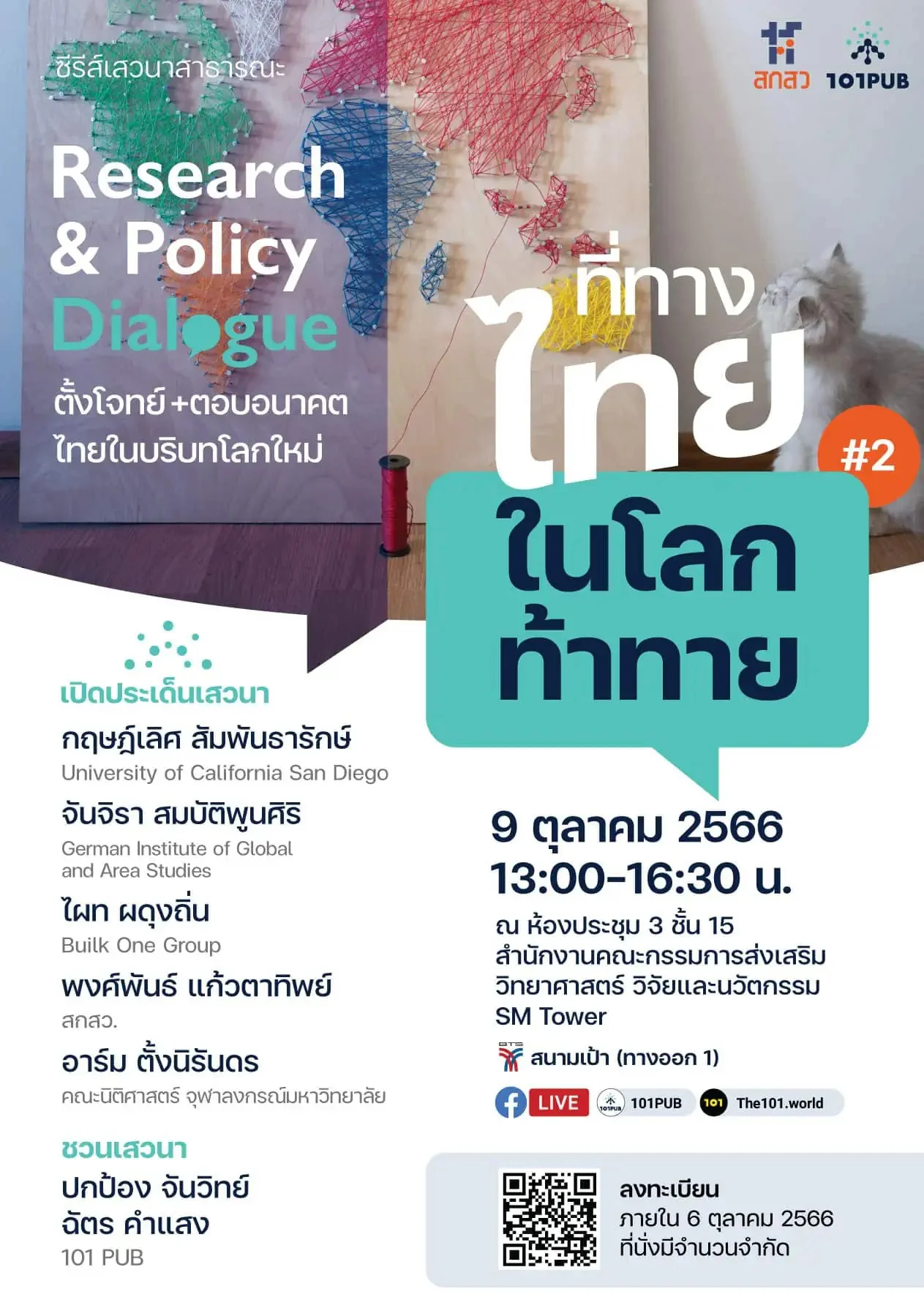 101PUB และสำนักงานคณะกรรมการส่งเสริมวิทยาศาสตร์ วิจัยและนวัตกรรม (สกสว.) ชวนล้อมวงถก ร่วมกัน ‘ตั้ง’ โจทย์วิจัย เพื่อ ‘ตอบ’ อนาคตนโยบายไทย ในซีรีส์เสวนาสาธารณะ Research and Policy Dialogue : ‘ตั้งโจทย์+ตอบอนาคต ประเทศไทยในบริบทโลกใหม่’