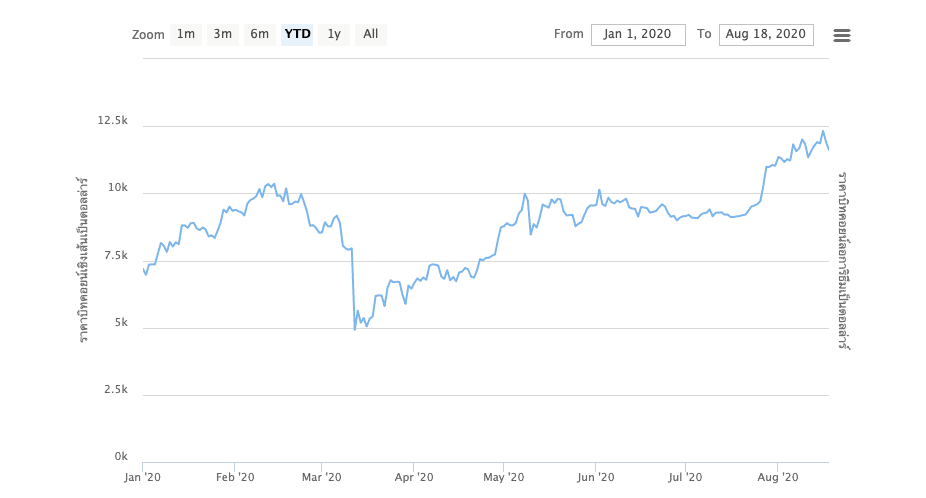 หากวัดกันตั้งแต่วันแรกของปี พ.ศ. นี้ มาจนถึงวันที่ 17 สิงหาคมที่ผ่านมา ราคาของบิตคอยน์ได้ปรับเพิ่มขึ้นจากหน่วยละ 215,829.53 บาท มาเป็นหน่วยละ 368,428.16 บาท หรือคิดเป็นอัตราการเปลี่ยนแปลงเท่ากับ 71.17 เปอร์เซ็นต์ เปรียบได้ว่าหากเราใส่เงินลงทุนในบิตคอยน์ไป 100 บาทเมื่อวันที่ 1 มกราคม ในวันที่ 17 สิงหาคม เราจะมีเงินสะสมในบัญชีเท่ากับ 171.17 บาทนั่นเอง