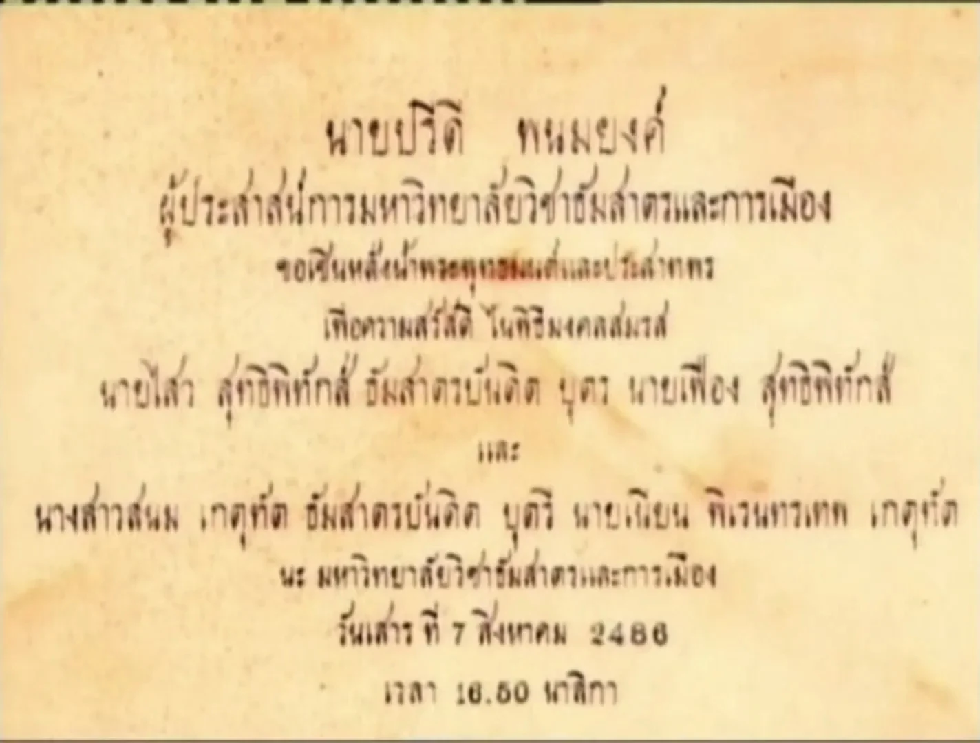 ในนาม “ผู้ประสาสน์การมหาวิทยาลัยวิชาธัมสาตรและการเมือง”