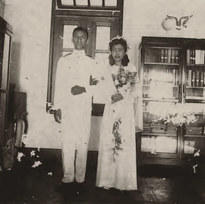 ไสวบันทึกไว้ว่า รู้จักสนมตั้งแต่ พ.ศ. 2478 เมื่อตนเองอาศัยอยู่กับพระในวัดราชาธิวาส ส่วนสนมพำนักที่บ้านซอยข้างวัดราชาธิวาส โดยสนมเป็นคนสวย ซึ่งในเวลานั้นสอบปริญญาตรีภาค 1 ได้แล้ว ขณะที่ไสวเรียนเพียง ม.7 เขาถือตัว คือ “ไม่ยอมแพ้เปรียบใครในเรื่องความรู้ ฉนั้น แม้ฉันจะชอบสนมในเวลานั้น ฉันก็หยู่เงียบตามวิสัยของฉัน” หลังจากนั้นอีกหลายปี “เรามาพบกันใหม่เมื่อ…เราเรียนปริญญาตรีปี 4 ด้วยกัน เรารักกัน และหมั้นกันโดย ร.ต. ทวี มุขดาร์ เป็นผู้แทนฝ่ายฉัน และเราแต่งงานกันตาม ก.ม. เมื่อ 6 ส.ค. 2486 ตามพรึตินัยเมื่อ 7 ส.ค. 2486”