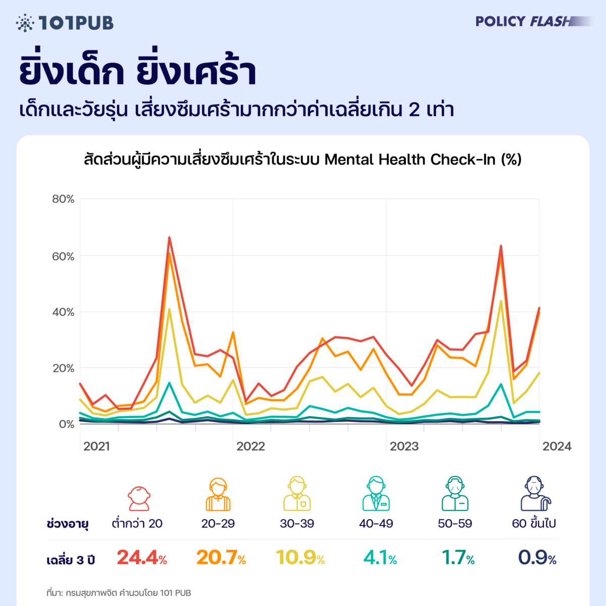 1 101 PUB ใช้ข้อมูลจากระบบ Mental Health Check-In เข้าถึงเมื่อวันที่ 8 กุมภาพันธ์ 2024 ตลอดการวิเคราะห์ในบทความนี้