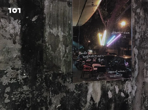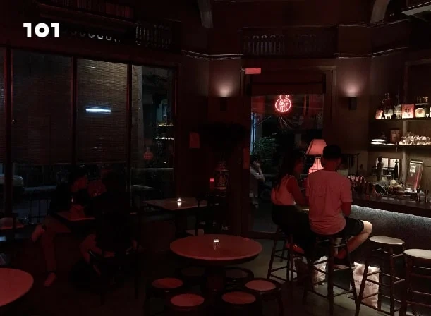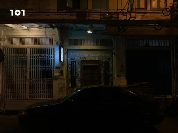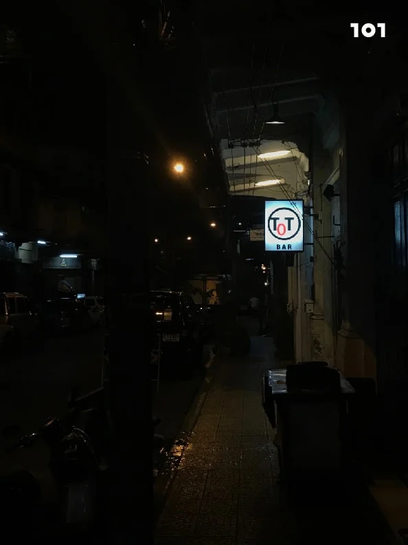 หากคุณคุ้นเคยกับร้าน Brown Sugar ขอให้เดินตามป้ายไฟนีออนสีชมพูสดมาเรื่อยๆ สังเกตซอยเล็กๆ ข้างร้าน หากเจอกระจกเงาที่เขียนตัวอักษรบอกเวลาเปิดปิดร้านและคำว่า ‘ค็อกเทล’ ด้วยลิขวิดเปเปอร์สีขาว ก็แสดงว่ามาถูกทาง เดินตรงเข้าไปตามลูกศร เห็นศาลพระภูมิแล้วให้ยกมือไหว้เสริมศิริมงคลสักหน่อย แล้วเดินผ่านประตูไม้ขึ้นบันไดไปที่ชั้นสามของตึก ก็จะเจอลานปูนโล่งๆ ประดับไฟนีออนสีฟ้าสลัว (“รีบเข้าเถอะกูกลัว” เพื่อนของผมบอกออกมาเบาๆ หลังเห็นบรรยากาศรอบตัว) และประตูทางเข้าทางด้านซ้าย