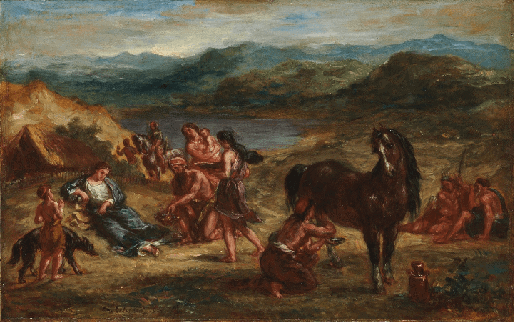 ภาพเขียนสีน้ำมันโดยเออแฌน เดอลาครัว (Eugène Delacroix) เป็นภาพโอวิด กวีชาวโรมัน ผู้ถูกเนรเทศสู่ไซเธีย