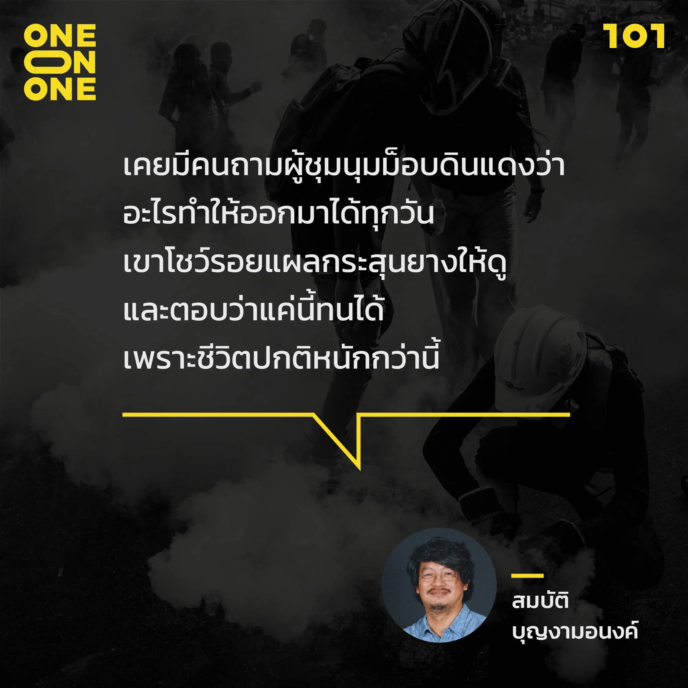 101 ชวน สมบัติ บุญงามอนงค์ หรือ บ.ก.ลายจุด นักกิจกรรม คุยเพื่อทำความเข้าใจม็อบดินแดง ผู้ชุมนุมกลุ่มนี้มาจากไหน สังคมควรมองเหตุการณ์ที่เกิดขึ้นอย่างไร เหตุใดการโต้ตอบของเจ้าหน้าที่จึงออกมาในระดับนี้ และปรากฏการณ์นี้จะนำขบวนการเคลื่อนไหวไปสู่สิ่งใด