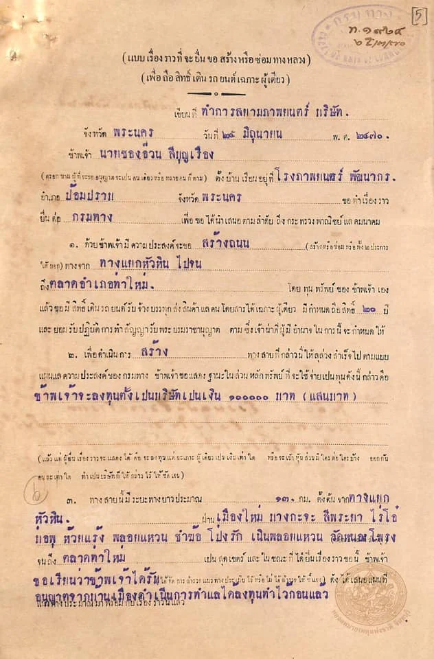 เอกสารการขออนุญาตสร้างถนนในจังหวัดจันทบุรี