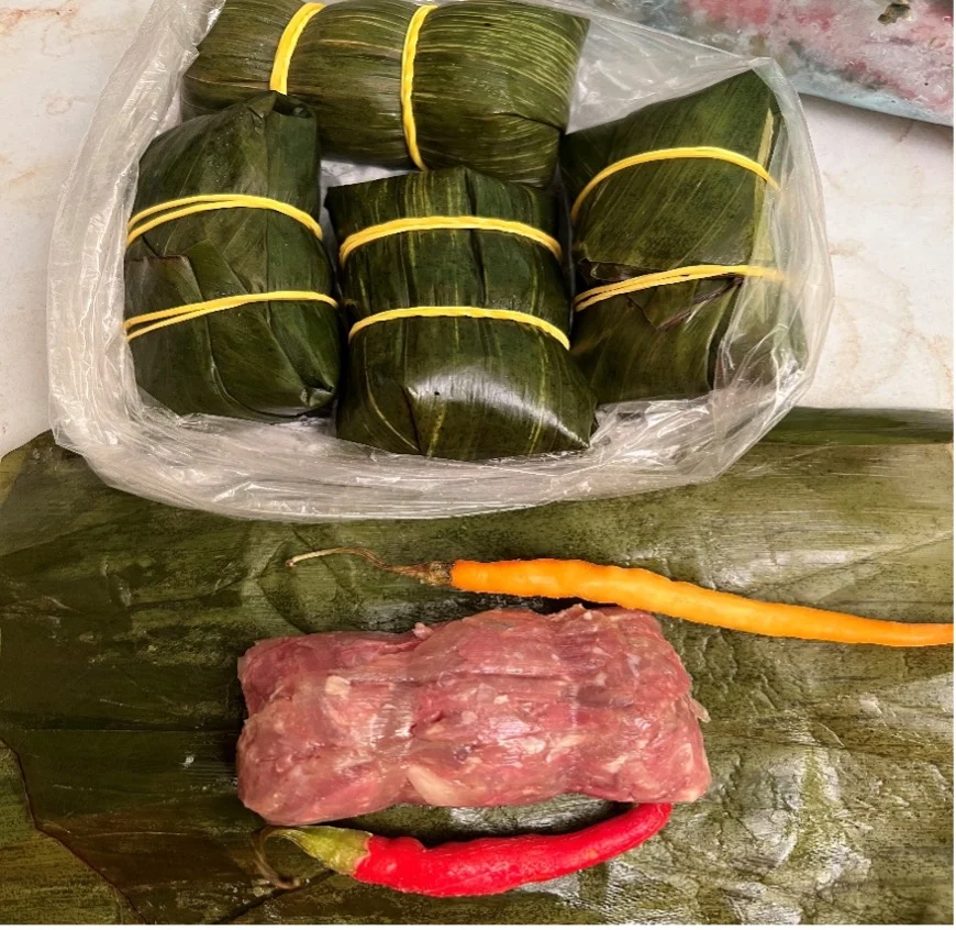 วิธีทำส่มฟานมีเนื้อกวางเป็นส่วนประกอบหลัก จะทำเป็นแบบส่มต่อนฟาน (เนื้อหั่นชิ้นเล็ก) หรือส่มฟักฟาน (เนื้อสับละเอียด) ก็ได้เอาตามที่ชอบ เครื่องปรุงมีแค่เกลือ กระเทียมสับ ข้าวเหนียวนึ่งสุก ทิ้งไว้ให้เย็น นำไปแช่น้ำสะอาด แล้วนำมาผึ่งให้หมาด แล้วก็เริ่มกระบวนการ ‘คั่นส่ม’ คือนำส่วนผสมทั้งหมดมาคลุกเคล้าให้เข้ากันในชามหรือกะละมังใบใหญ่ ค่อยๆ นวดส่วนผสมให้เป็นเนื้อเดียวกัน พักไว้สักชั่วโมง แล้วก็เริ่มกระบวนการห่อส่มฟานด้วยใบตองสัก 2-3 ชั้น มัดด้วยหนังยางวง (ถ้าต้องการความดั้งเดิม) เนื่องจากใบตองเป็นของหายากในแถบนิวอิงแลนด์ เพราะต้นกล้วยเป็นพืชเขตร้อน ไม่ใช่พืชท้องถิ่นของที่นี่ ผู้เขียนจึงมักซื้อใบตองแช่แข็งที่นำเข้าจากไทยมาเก็บไว้ที่บ้าน (ตามภาพ) มีจำหน่ายบ้างในตลาดเอเชียตามเมืองใหญ่ๆ ใกล้เคียงเช่นบอสตันและนิวยอร์ก