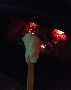 จี่ข้าวหน้าเตาผิง กินกับเนื้อฟานแดดเดียว / ภาพโดยผู้เขียน