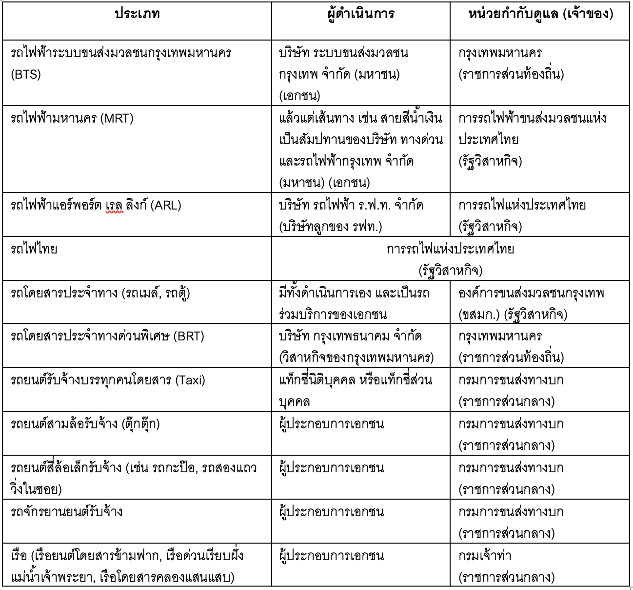 ยิ่งไปกว่านั้น ขนส่งสาธารณะ (Public Transportation) ส่วนใหญ่ที่ได้ใช้บริการก็หาใช่อยู่ในความดูแลของ กทม. ไม่ ผิดแผกกับมหานครใหญ่ของโลกที่สิ่งเหล่านี้อยู่ภายใต้การบริหารจัดการโดยท้องถิ่น