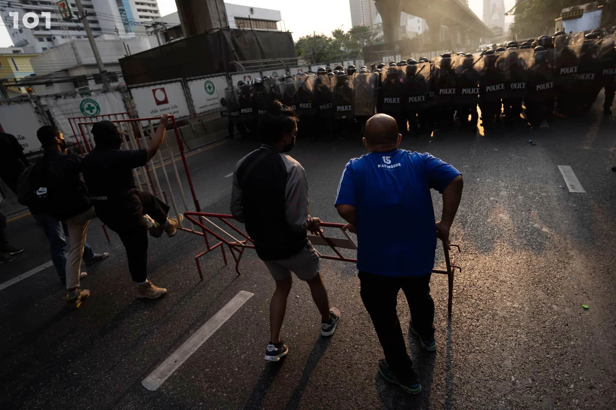 ต่อมาเวลา 17.00 น. เจ้าหน้าที่ควบคุมฝูงชนเข้าสลายการชุมนุมบริเวณหน้าสถานทูตเมียนมา จนเกิดการปะทะกับผู้ชุมนุม ก่อนที่ผู้ชุมนุมจะถอยร่นและยุติการชุมนุมในเวลา 19.19 น.