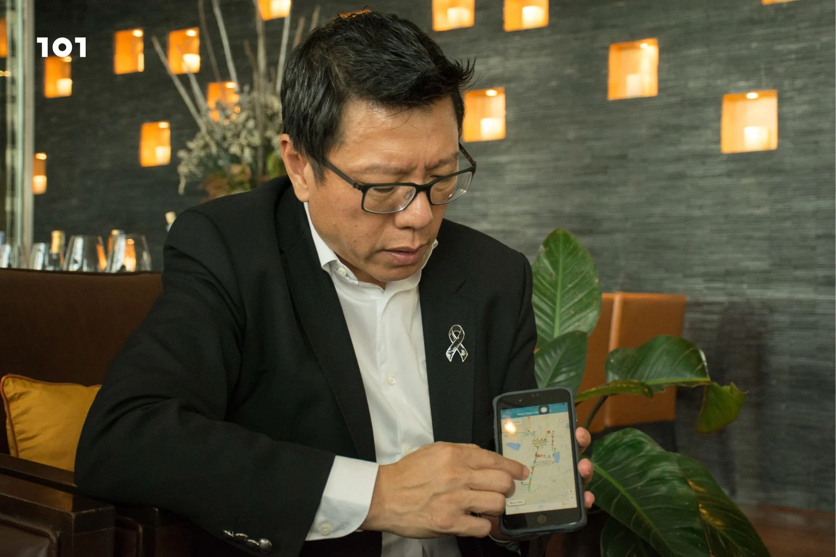 (หยิบโทรศัพท์ออกมา พร้อมเปิดแอปพลิเคชัน) นี่คือ ตัวรถบัสในตัวเมืองขอนแก่นทั้งหมด ซึ่งอยู่ตามเส้นทางหลักของเมืองขอนแก่น เมื่อเราเอามือไปแตะที่ตัวรถ เราจะเห็นชื่อคนขับ ป้ายทะเบียน อัตราความเร็วของรถ จะวิ่งถึงป้ายต่างๆ เมื่อไหร่ เมื่อเรานั่ง และเห็นว่าคนขับไม่ดี เราสามารถแคปหน้าจอและส่งให้เจ้าหน้าที่เพื่อร้องเรียนได้