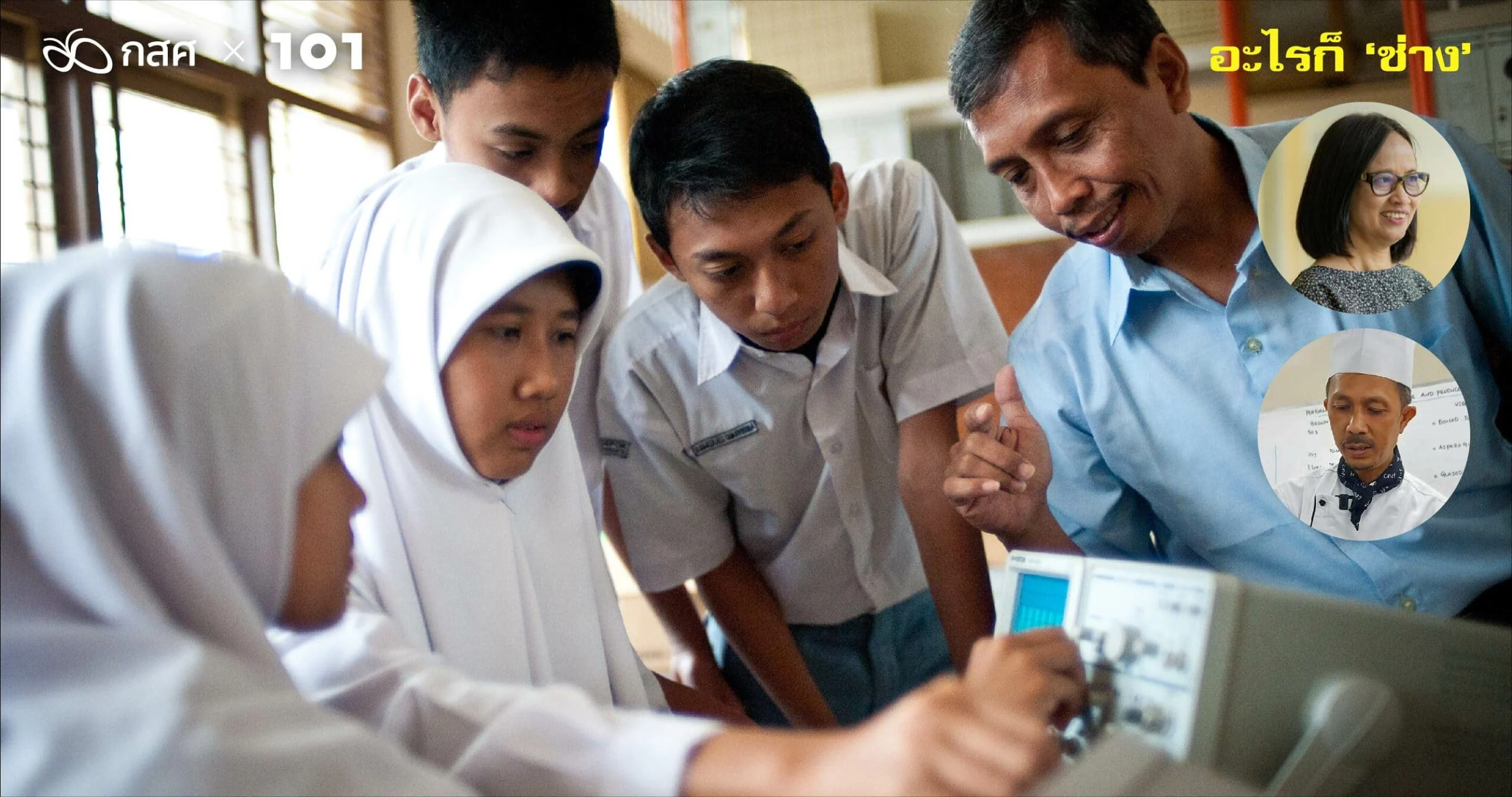 101 สนทนากับ เชฟ – ช่างตัดเสื้อ – คนทำหุ่นยนต์ และครูสอนศิลปะ ตัวอย่างของยอดฝีมือตัวจริงที่ฝึกปรือวิชาจากรั้วอาชีวศึกษา พร้อมเรื่องราวที่ช่วยให้เห็นความหลากหลายของอาชีวศึกษามากยิ่งขึ้น