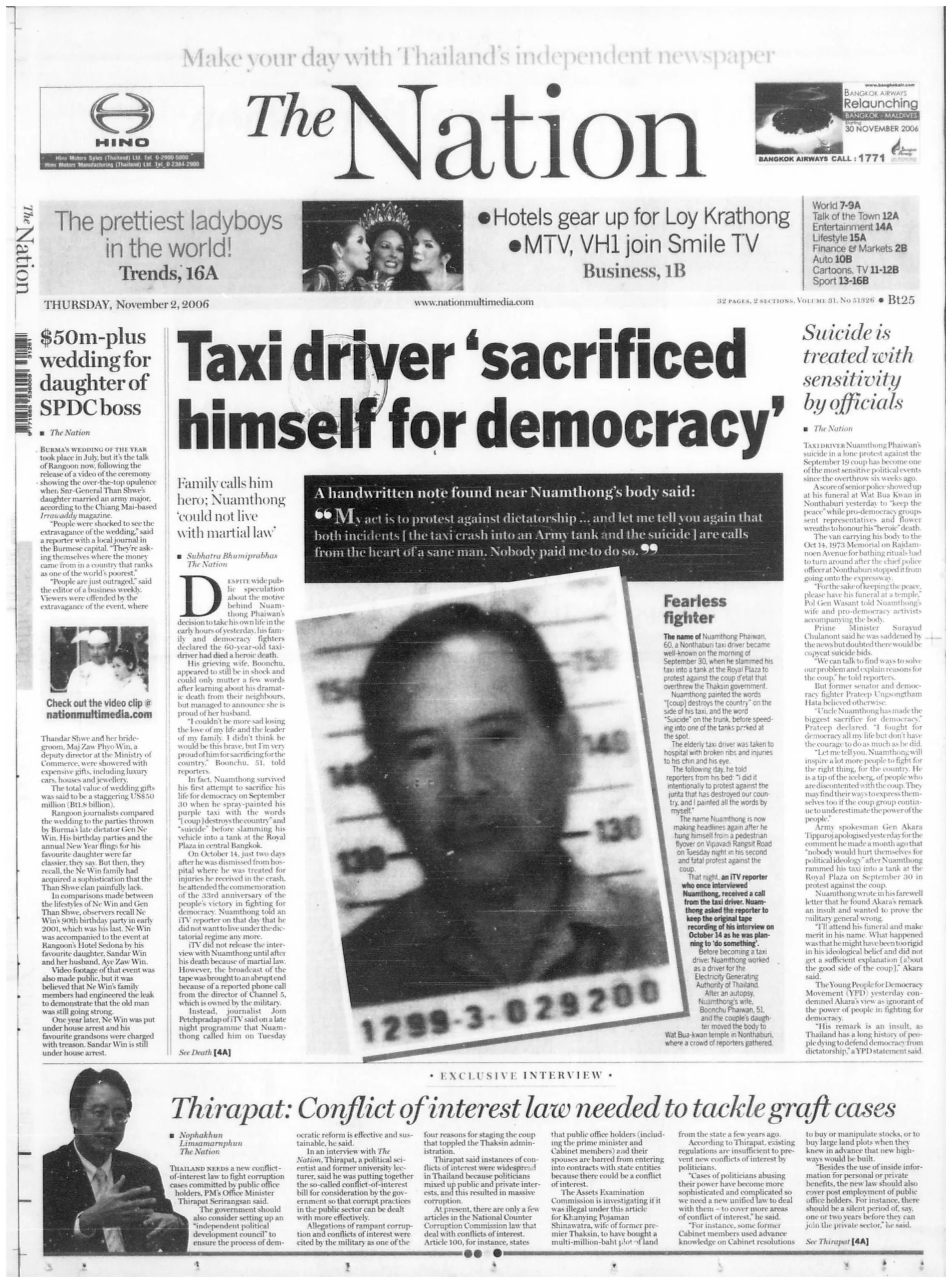 หากเป็นเช่นนั้นจริง ทำไมชายคนเดียวกันถึงตัดสินใจผูกคอตายใต้สะพานลอยข้ามถนนวิภาวดีฯ หน้าสำนักงานหนังสือพิมพ์ไทยรัฐ พร้อมจดหมายที่เขียนด้วยลายมืออย่างบรรจงประณีต
