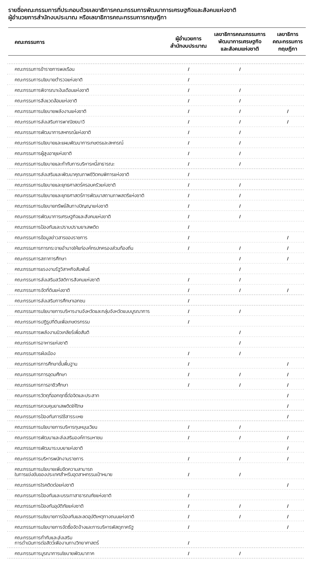 รายชื่อคณะกรรมการที่ประกอบด้วยเลขาธิการคณะกรรมการพัฒนาการเศรษฐกิจและสังคมแห่งชาติ ผู้อำนวยการสำนักงบประมาณ หรือเลขาธิการคณะกรรมการกฤษฎีกา
