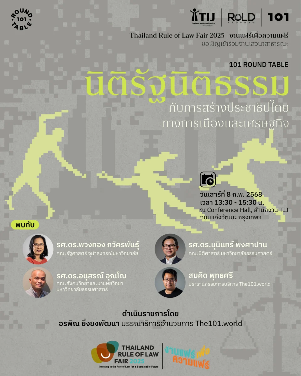 วันโอวัน ร่วมกับ สถาบันเพื่อการยุติธรรมแห่งประเทศไทย (TIJ) และ เครือข่ายด้านหลักนิติธรรมและการพัฒนา (RoLD) ชวนเปิดบทสนทนานี้ ภายในงาน Thailand Rule of Law Fair 2025 | งานแฟร์เพื่อความแฟร์ ผ่านเสวนาสาธารณะในหัวข้อ ‘นิติรัฐนิติธรรม’ กับการสร้างประชาธิปไตยทางการเมืองและเศรษฐกิจ