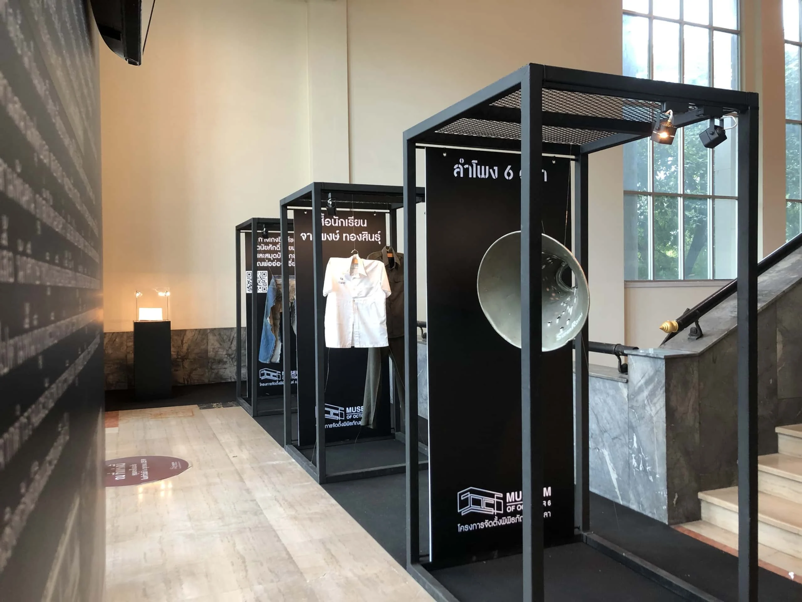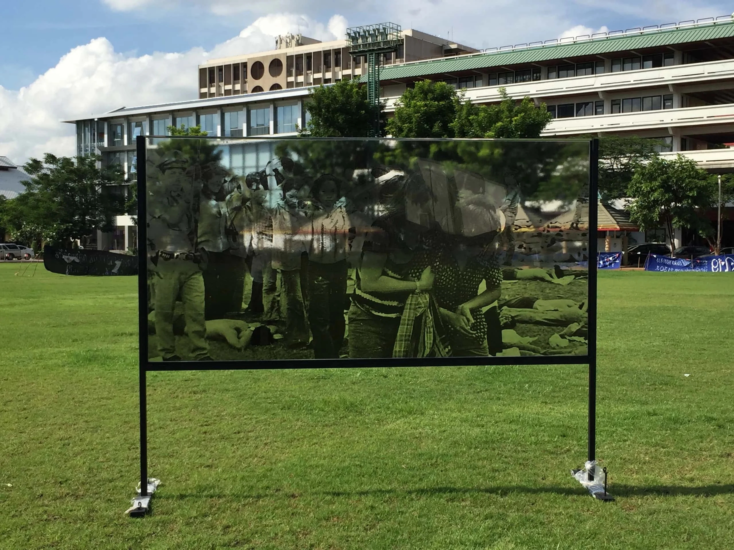ประเด็นเล็กๆ ดังกล่าวชวนให้หันกลับมาพิจารณา AR อีกครั้ง ถึงแม้ว่าในเชิงคอนเซปต์ AR เป็นเทคนิคที่ตอบโจทย์การสร้างการรับรู้เรื่องราว การเล่นกับพื้นที่จริง และการต่อยอดวัตถุดิบเชิงจดหมายเหตุอย่างภาพถ่ายและเอกสารชันสูตร แต่ผู้เขียนกลับไม่คิดว่าการมองหน้าจอทำให้ตัวเองได้ ‘รู้สึก’ กับตัวพื้นที่มากนัก ในฐานะนิทรรศการ on-site ดูเหมือนว่าภาพถ่ายที่มีตัวตนในโลกจริง (ไม่ว่าจะเป็นการอัดลงบนแผ่นพลาสติกใสแบบนิทรรศการปี 2559 หรือบนบอร์ดขนาดใหญ่ติดตั้งข้างหน้าต่างในปีนี้) จะทำหน้าที่ได้ดีกว่าภาพในโลกเสมือนอย่าง AR ที่ทำให้พะวงอยู่แต่กับการมองหน้าจอมากกว่าจะเชื่อมโยงกับพื้นที่รอบข้าง