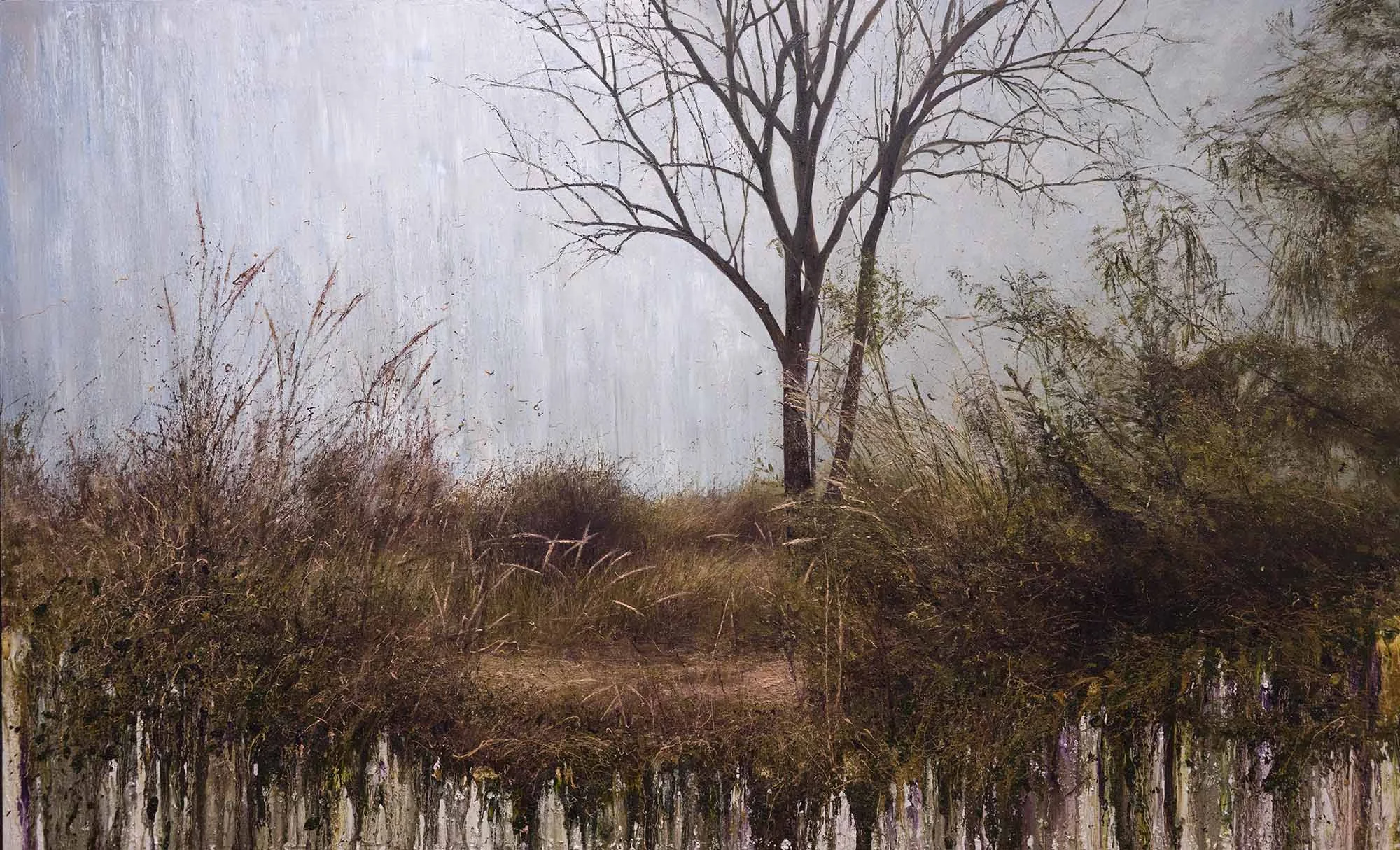 ภาพทุ่งหญ้ารกร้างนี้คือมุมมองจากฝั่งสายตาของชุมพรและวิชัย ประตูอันเป็นที่แขวนร่างของผู้เสียชีวิตจึงไม่ปรากฏให้เห็น จิตรกรรมแสดงภูมิทัศน์ที่เหตุร้ายแรงทางการเมืองได้เกิดขึ้น แต่ปราศจากภาพร่างศพหรือวัตถุที่เป็นเครื่องหมายสำคัญของเหตุการณ์ แม้กระบวนการทำงานของพชรจะหนักแน่นด้วยการสืบค้นข้อมูลเชิงประวัติศาสตร์ ศิลปะของเขาก็เว้นที่ว่างให้ผู้ชมได้แกะรอยการ ‘แขวน’ ผ่านผืนผ้าใบที่ไม่บอกอะไรมากนัก ตัวบอกใบ้เดียวที่ศิลปินมอบให้กับผู้ชมคือคำว่า “Red Gate” ในชื่อผลงาน