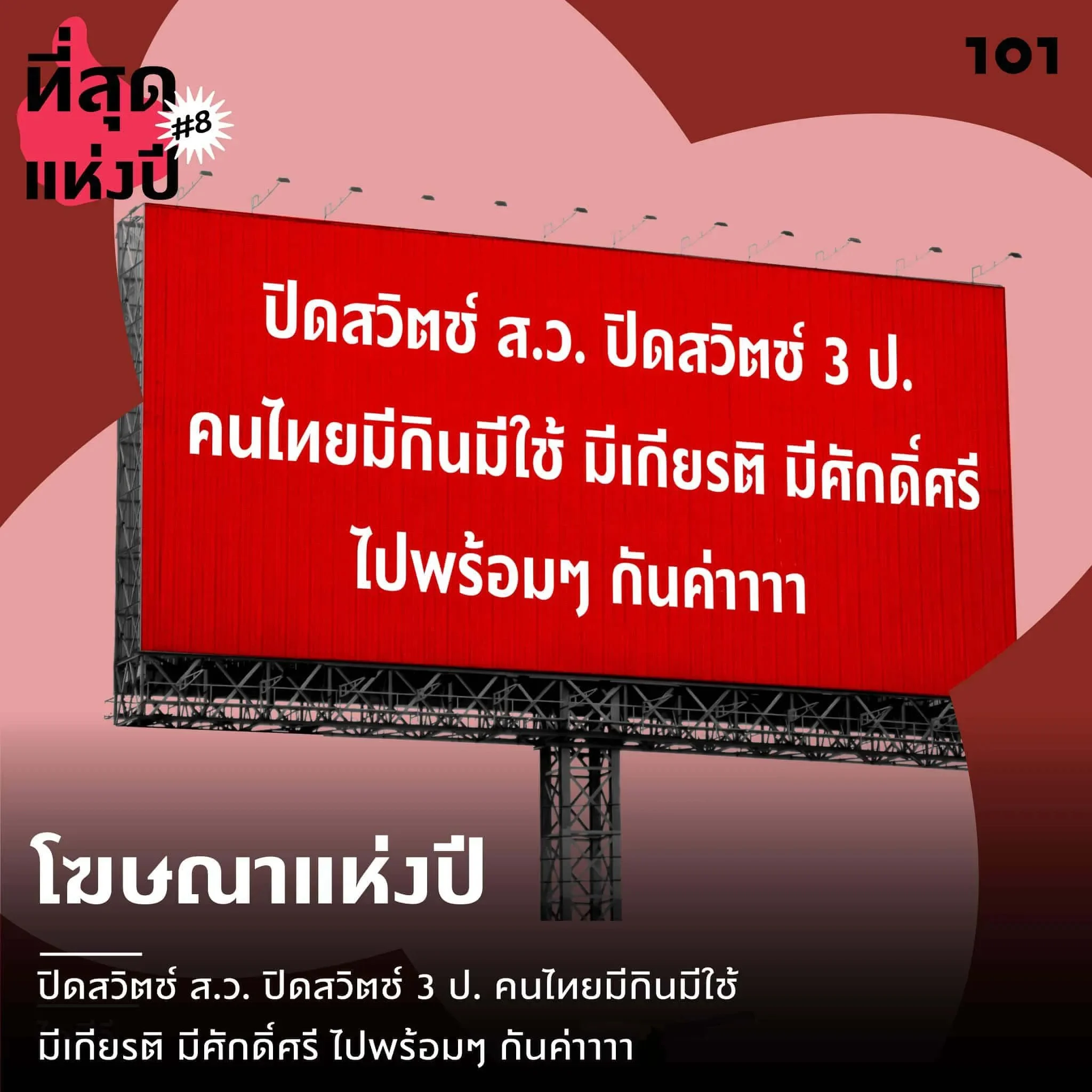 8.โฆษณาแห่งปี: ปิดสวิตช์ ส.ว. ปิดสวิตช์ 3 ป. คนไทยมีกินมีใช้ มีเกียรติ มีศักดิ์ศรี ไปพร้อมๆ กันค่า