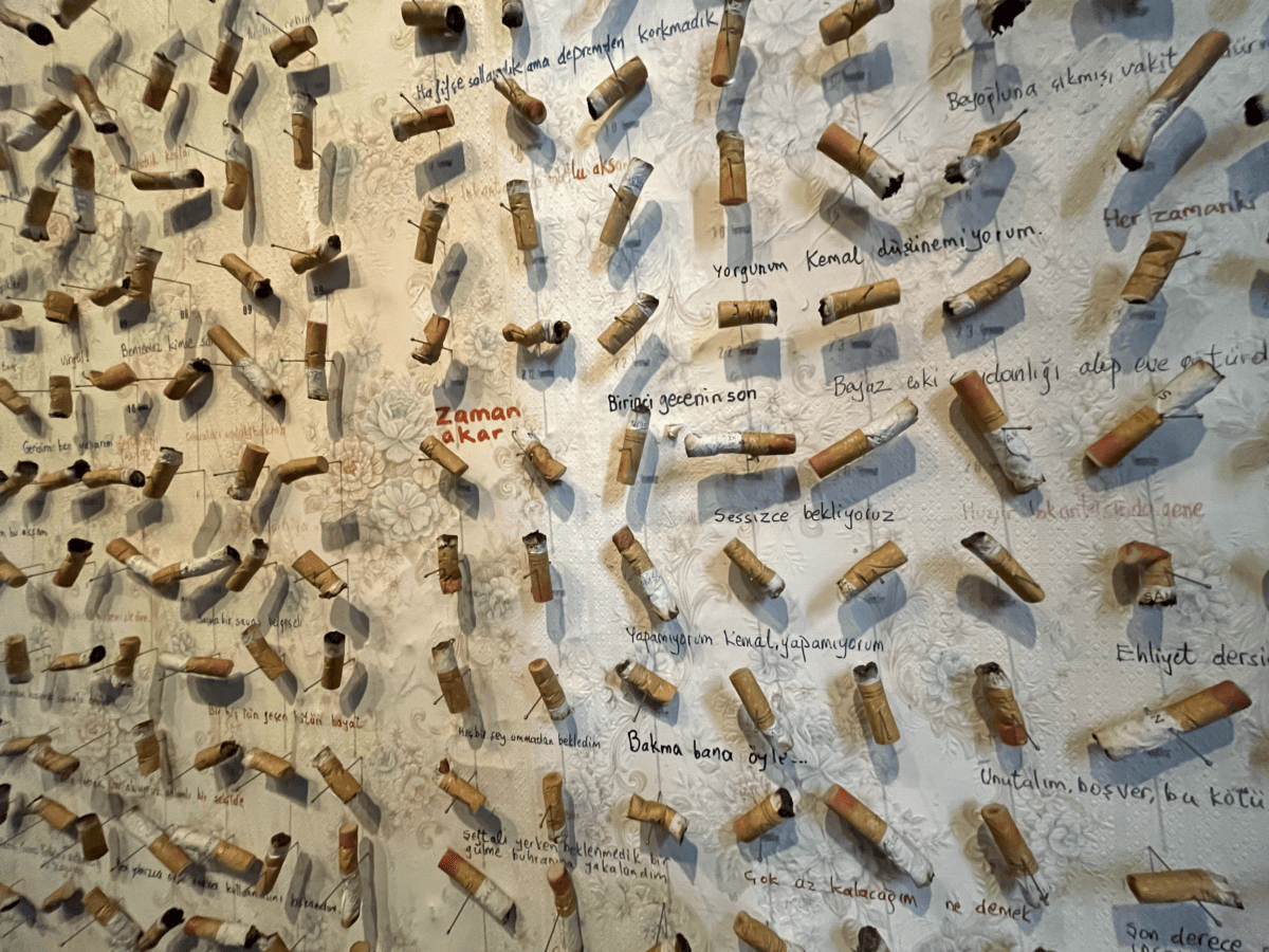 เสียงเล่าเรื่องทั้งในภาษาตุรกีและภาษาอังกฤษจาก audio guide ในพิพิธภัณฑ์นั้นก็บรรยายโดยปามุกเองเช่นกัน เขาเป็นทั้งปามุกที่เคมาลเล่าถึงในนวนิยายและปามุก สองตัวตนที่รวมเป็นหนึ่ง ส่งเสียงออกมาจากป่าดงรกชัฏของเรื่องเล่าว่าด้วยวัตถุสะสมและชีวิตที่รายล้อม หลอมรวมผู้ชมให้เคลื่อนตำแหน่งเข้าไปเป็นส่วนหนึ่งของโลกของเคมาล เรากลายเป็นตัวละครในส่วนต่อขยายของนวนิยายที่เรื่องราวจบลงก่อนที่พิพิธภัณฑ์จะเปิดให้เข้าชม ในแง่นี้ อาคารสีแดงทรงสูง แคบและยาวในย่านชุคุร์จุมา ที่เป็นทั้งบ้านของฟูซุนและที่ตั้งของพิพิธภัณฑ์ก็คือ ‘threshold’ ปากประตูแห่งการเปลี่ยนผ่านระหว่างโลกทั้งสองใบที่มีเสียงจากหูฟังเป็นตัวนำทาง