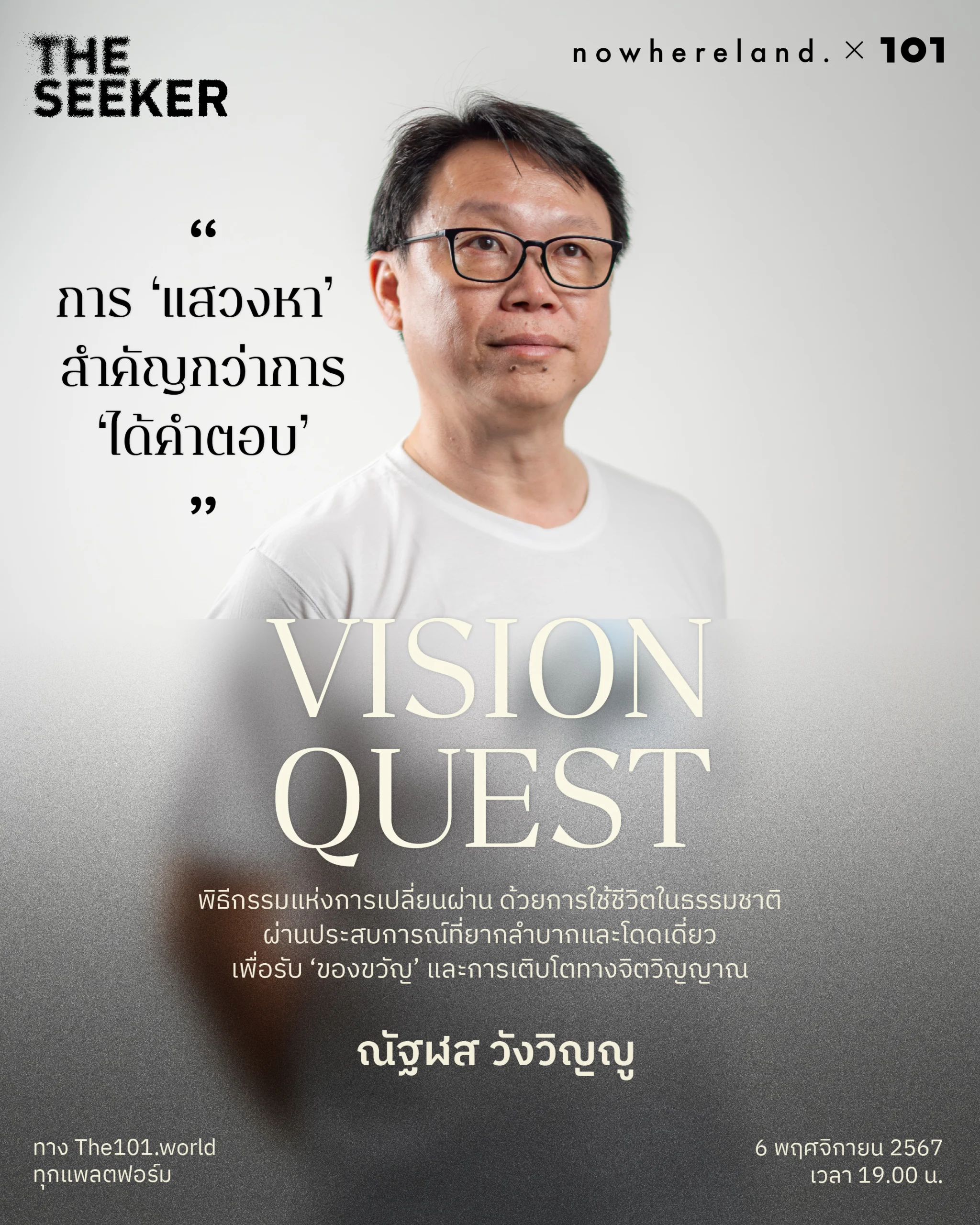 บนหนทางแห่งการตามหา ‘ความหมาย’ ณัฐฬสแสวงหาผ่านทั้งการบวช การทำงาน การเรียนในมหาวิทยาลัยนาโรปะ และการเข้าร่วม Vision Quest ที่สหรัฐอเมริกา อันเป็น ‘จุดเปลี่ยนผ่าน’ ครั้งสำคัญของชีวิต