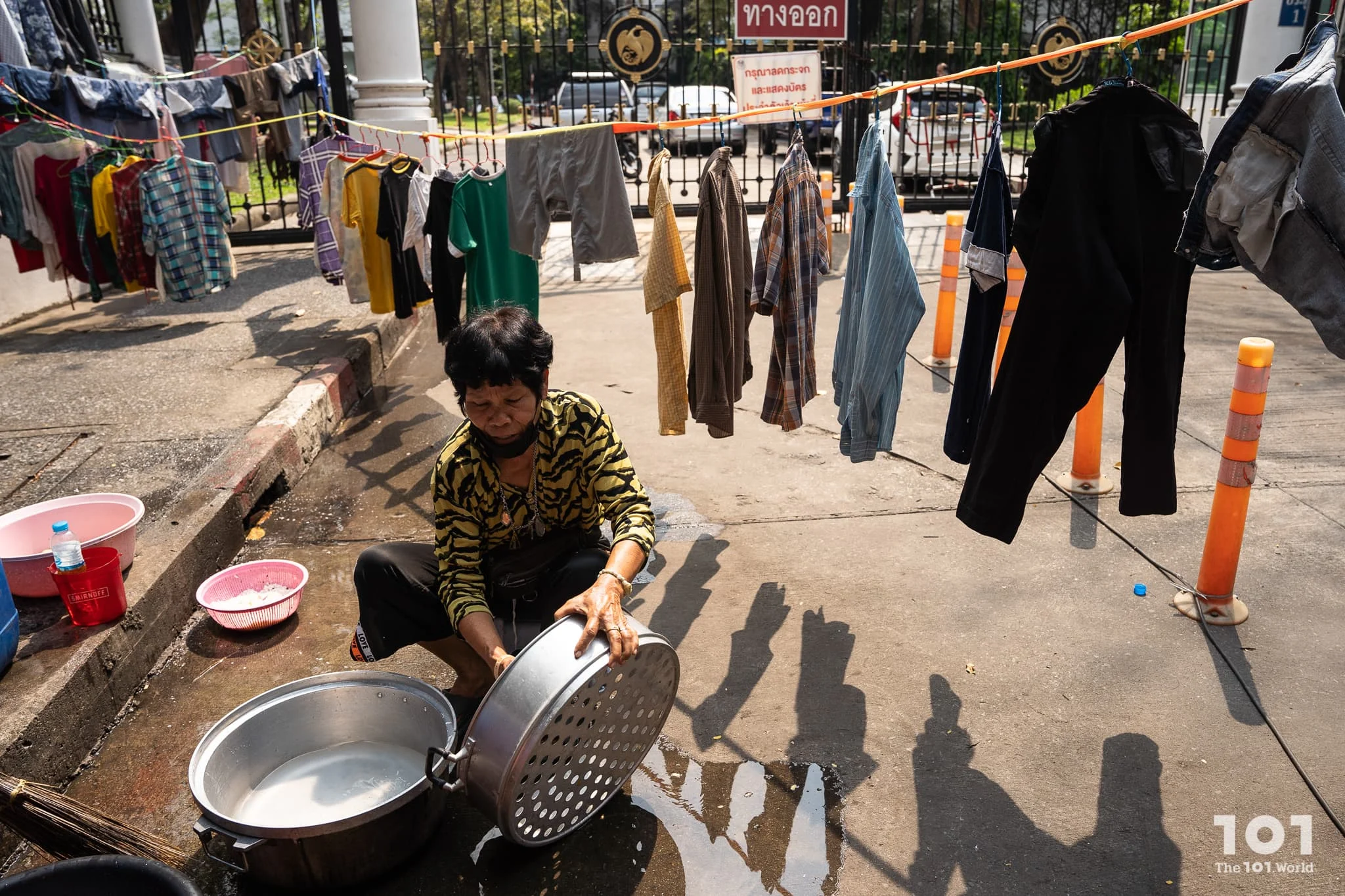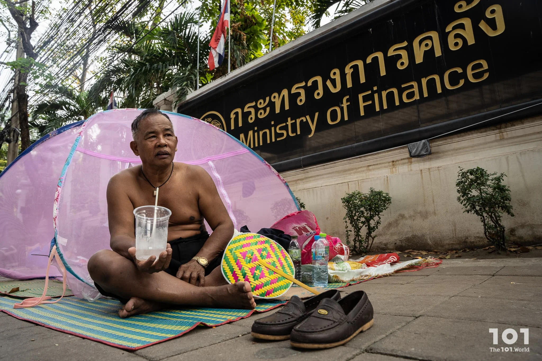 “คนเรานี่นะ ถ้าไม่ถึงที่จริงๆ คงไม่ลำบากลำบนห่างบ้านมากันแบบนี้หรอก” พนม อันโอ่น ชาวนาวัย 58 ปีบอกเราเช่นนั้น เธอกับเพื่อนร่วมอาชีพอีกกลุ่มใหญ่จ่ายเงินค่าเดินทางตกคนละ 400 บาทจากพิษณุโลกเพื่อมากางเต็นต์คับแคบนอนอยู่หน้ากระทรวงการคลัง หวังให้รัฐบาลได้เห็นและได้ยินสิ่งที่พวกเธอต้องเผชิญบ้าง