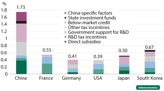 หากการที่สินค้าจีนตีตลาดได้มากเป็นเพราะประสิทธิภาพที่เกิดขึ้นภายใต้การแข่งขันเสรี ก็อาจไม่ใช่ปัญหาใหญ่นัก แต่สาเหตุหลักของปัญหาสินค้าจีนล้นทะลักในเวลานี้คือ สินค้าจีนอาจไม่ได้เข้ามาแข่งขันอย่างเป็นธรรม ประเด็นใหญ่ที่ผู้มีส่วนได้เสียตั้งคำถามคือ สินค้าจีนราคาถูกกว่าสินค้าที่ผลิตในประเทศอื่นได้ เพราะรัฐบาลจีน ‘ให้เงินอุดหนุน’ ต้นทุนการผลิต ต้นทุนการขนส่ง และต้นทุนอื่น – จ่ายต้นทุนส่วนหนึ่งแทน เพื่อให้ผู้ผลิตสามารถส่งออกสินค้าไปตีตลาดต่างประเทศได้ในราคาต่ำกว่าต้นทุนจริง – รายงานของสหภาพยุโรประบุว่า ในปี 2019 รัฐบาลจีนให้เงินสนับสนุนภาคเอกชนประมาณ 1.7% ของ GDP สูงกว่าประเทศอื่นอย่างมีนัยสำคัญ