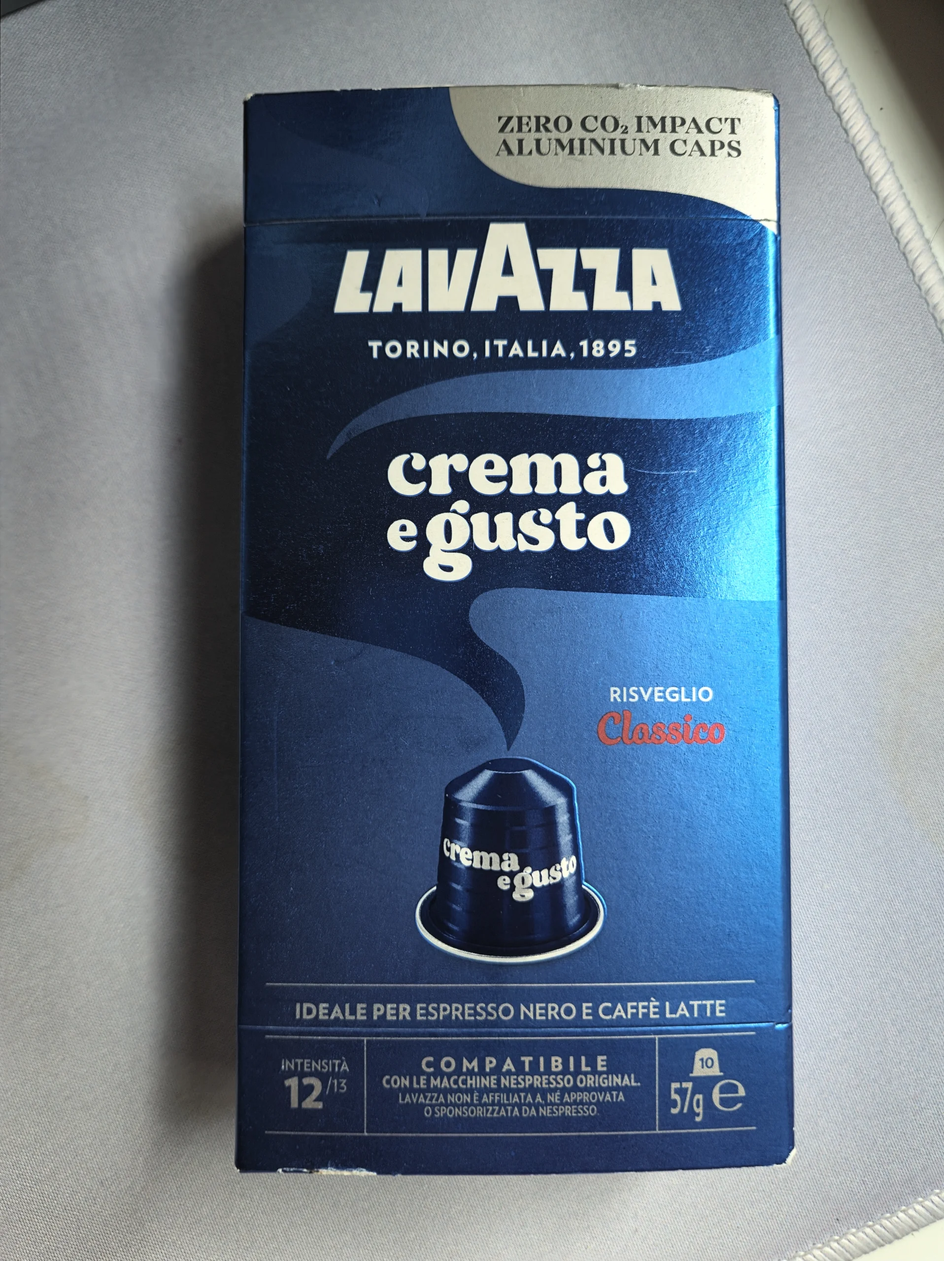 อาจไม่ใช่ถุงสำหรับเดือนนี้ เพราะขอเปลี่ยนเป็นแคปซูลแทน อยากให้เห็นการปรับตัวของแบรนด์ที่มีอายุร่วมร้อยกว่าปีอย่างลาวาซ่า ซึ่งนอกเหนือจากจะมีเมล็ดกาแฟ มีเครื่องชง มีร้านค้าปลีกแล้ว พวกเขายังทำแคปซูลขายด้วย กล่องนี้ได้มาตอนไปมิลาน เป็นเอสเพรสโซ่แคปซูลที่นอกจากจะขายรสชาติเหมือนเดิมแล้ว ยังขายเรื่องสิ่งแวดล้อม เป็นผลิตภัณฑ์ของลาวาซว่าที่ผลิตโดยไม่มีการปล่อยก๊าซเรือนกระจก เรียกว่าอร่อยด้วย จิตใจดีด้วยไปพร้อมๆ กัน