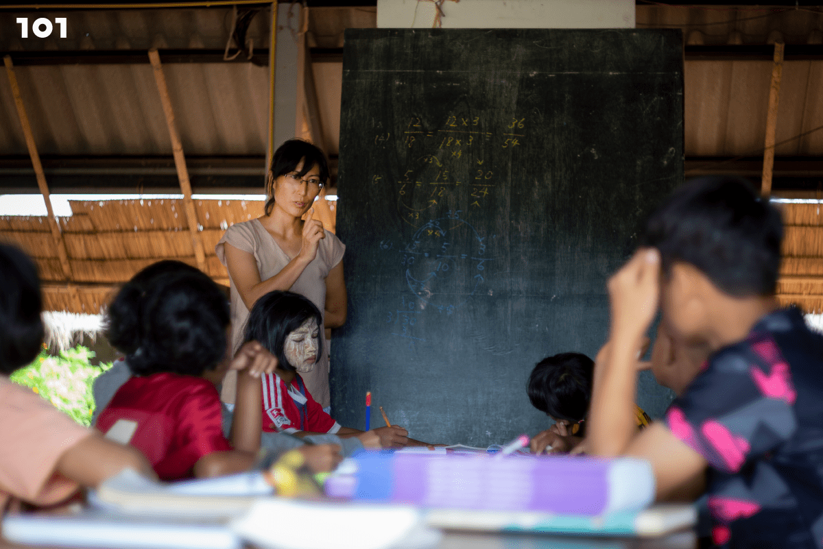 บางวันเธอสอนคณิตศาสตร์ บางวันเธอพาเด็กๆ ที่โรงเรียนออกไปทำนา