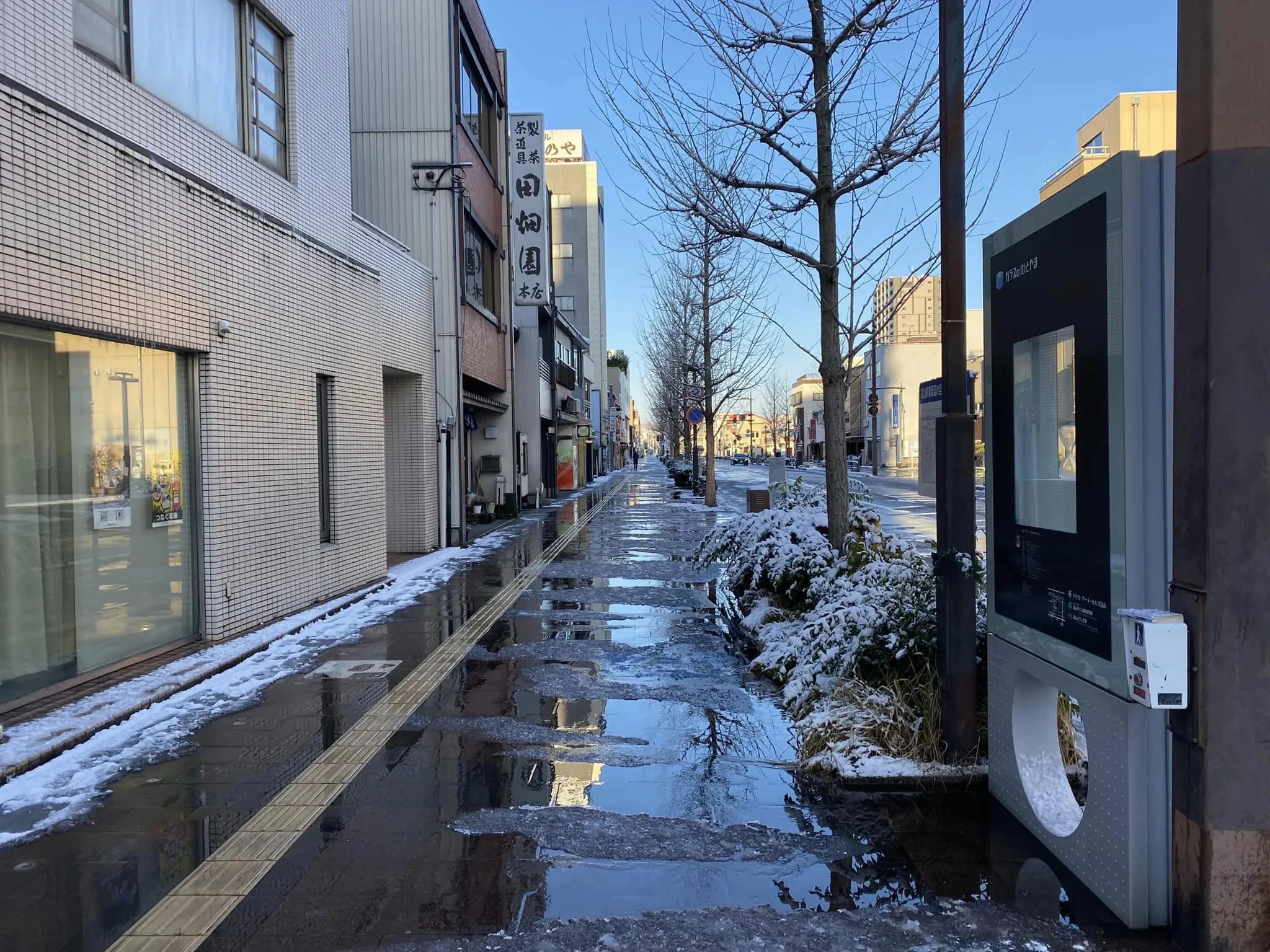 เราไปถึงโทยามะในคืนหิมะตกหนัก สิ่งประทับใจแรกที่ได้เห็นคือ เครื่องฉีดน้ำช่วยละลายหิมะบนถนนเพื่อป้องกันมิให้รถลื่นไถล แสดงให้เห็นความใส่ใจในรายละเอียดของที่ญี่ปุ่น
