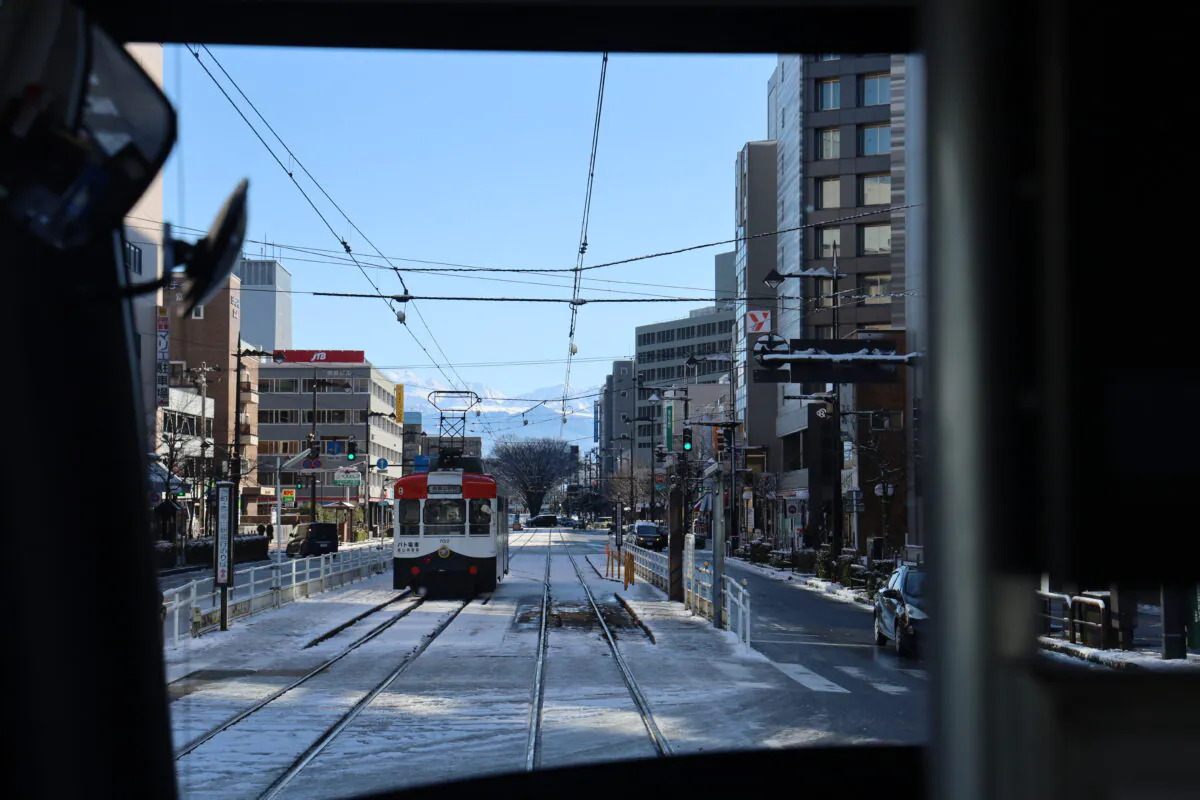ถึงแม้เป็นวันอาทิตย์ แต่เห็นได้ชัดว่าศูนย์กลางของเมืองบริเวณใต้สถานีโทยามะที่คนมายืนคอยขึ้นรถรางคึกคักสมคำกล่าวอ้าง กลุ่มผู้โดยสารส่วนใหญ่มากันเป็นครอบครัว ใช้เวลาทำกิจกรรมร่วมกันในวันหยุดสุดสัปดาห์