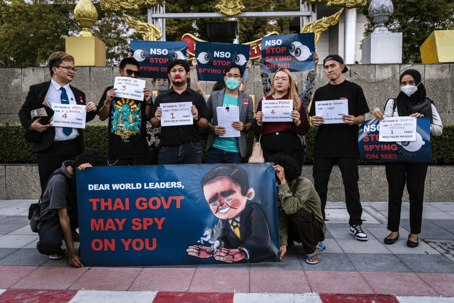 วิธีการกดปราบรูปแบบหนึ่งที่เกิดขึ้นอย่างแพร่หลายและมีต้นทุนดำเนินการน้อยที่สุดคือ การใช้เทคโนโลยีสอดแนมเพื่อคุกคามผู้ลี้ภัยจากระยะไกล หนึ่งในนั้นคือ ‘เพกาซัสสปายแวร์’ สปายแวร์สัญชาติอิสราเอลที่เรียกได้ว่าเป็นอาวุธไซเบอร์ที่ทันสมัยที่สุดในขณะนี้ สามารถเจาะระบบและเข้าควบคุมโทรศัพท์ของเป้าหมายได้อย่างสมบูรณ์และเข้าถึงข้อมูลได้ทุกอย่าง ทั้งรหัสผ่าน ข้อความในแชทต่างๆ รูปภาพ วิดีโอ ตำแหน่งของเป้าหมาย ตลอดจนสามารถสั่งเปิดกล้องและไมโครโฟนของโทรศัพท์เพื่อดักฟังและดูสิ่งที่เกิดขึ้นรอบๆ โดยที่เจ้าของโทรศัพท์ไม่รู้ตัว