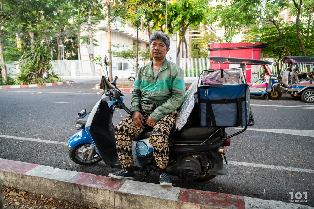 ผมเคยไปส่งอาหารบนอพาร์ตเมนต์ ขึ้นไปถึงห้องพักก็เจอว่าเขาไม่ใส่อะไรเลย เขาไม่ได้พูดอะไรนะ แต่กวักมือชักชวนให้เข้าไปในห้อง เขาคงคาดหวังอะไรบางอย่าง แต่เราก็ไม่สนใจและเมื่อได้เงินค่าส่งก็กลับ ไรเดอร์บางคนเคยเจอถามว่าจ่ายค่าตัวเอาไหม รับงานนอกไหม ซึ่งไรเดอร์ที่โดนส่วนใหญ่มักจะเป็นเด็กหน้าตาดี ส่วนผมมีหน้าตาเป็นอาวุธ คนอื่นก็อาจจะไม่ค่อยสนใจผม (หัวเราะ) ถ้าเจอลูกค้าเข้าข่ายคุกคาม อันที่จริงเราสามารถติดต่อศูนย์บริการและศูนย์ช่วยเหลือของแอปพลิเคชันได้นะ ขอให้เขาช่วยยกเลิกงาน แต่การติดต่อส่วนนี้ใช้เวลานานมาก บางครั้งใช้เวลาชั่วโมงกว่า