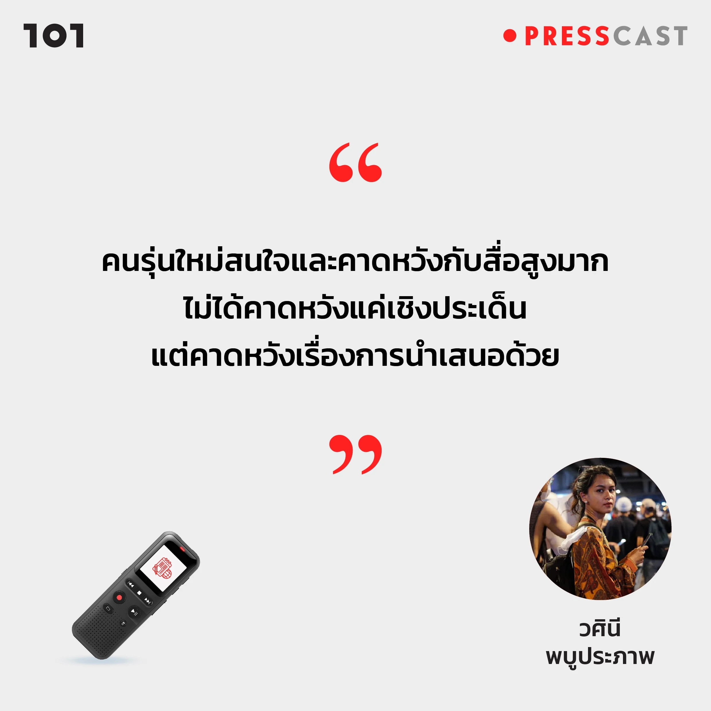 หมายเหตุ : เรียบเรียงเนื้อหาจาก รายการ PRESSCAST EP.21 : เสียงคลื่นลูกใหม่ในสนามข่าว ‘วศินี พบูประภาพ’ ดำเนินรายการโดย ภาวรรณ ธนาเลิศสมบูรณ์ เผยแพร่ครั้งแรกเมื่อ 13 กรกฎาคม 2564