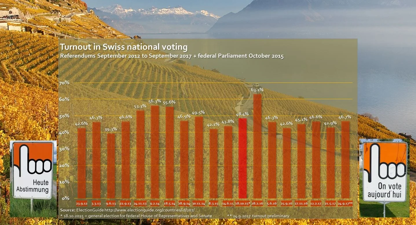 The only time in the last five years that turnout has topped 60% was in February last year (2016) when there were four referendum topics arousing considerable interest.