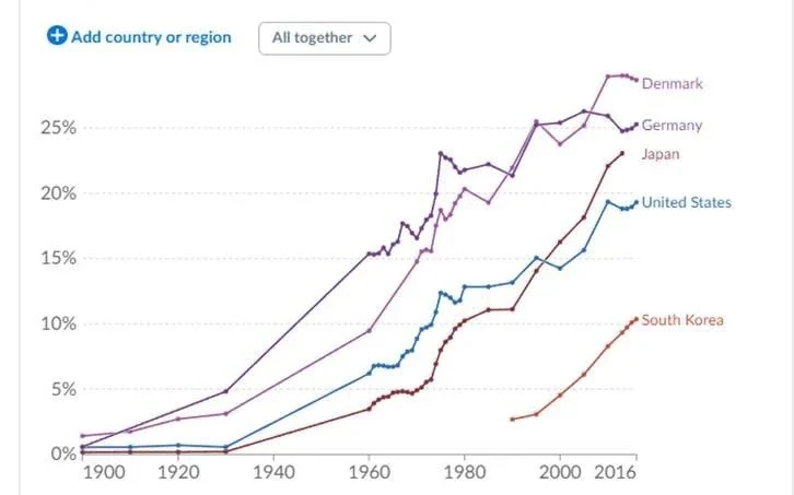 เมื่อประชาชนมีรายได้น้อย ลองไปดูการใช้จ่ายของภาครัฐเพื่อช่วยเหลือประชาชน หรือ รายจ่ายสาธารณะ (Public social spending) ที่นำมาดูแลประชาชนทั้งค่าเล่าเรียน ค่ารักษาพยาบาล เงินบำนาญ ฯลฯ ของเกาหลีใต้กันบ้าง