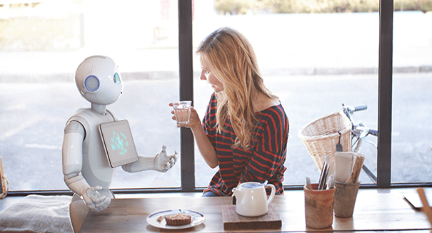 หุ่นยนต์ Pepper ถูกนำไปใช้ในงานด้านบริการของภาคธุรกิจ เช่น การต้อนรับลูกค้า การแนะนำผลิตภัณฑ์ เป็นต้น หุ่นยนต์ในยุคนี้มีความแตกต่างอย่างมีนัยสำคัญจากยุคแรกก็คือ มันสามารถ ‘สื่อสาร’ กับเราได้ แม้จะเป็นการสื่อสารที่เป็นไปตามรูปแบบที่กำหนดอยู่ก็ตาม