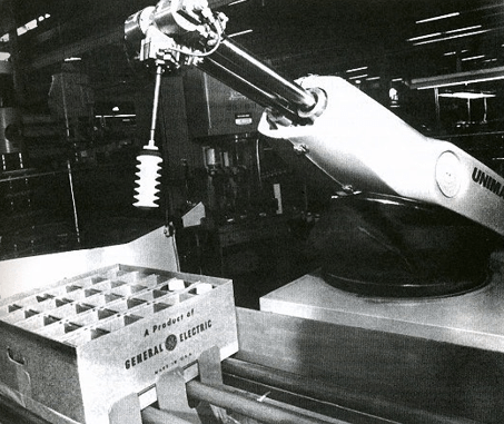 แต่เรามาเริ่มรู้จักหุ่นยนต์อย่างจริงจังในปี 1954 เมื่อหุ่นยนต์ถูกนำมาใช้ในโรงงานอุตสาหกรรม โดยหุ่นยนต์ตัวแรกที่ใช้โรงงานมีชื่อว่า ‘Ultimate’ ผลิตโดย George Devo หุ่นยนต์ตัวนี้ไม่ได้มีรูปร่างคล้ายมนุษย์อย่างที่เราคิดกัน แต่เจ้า Ultimate มีเพียงแขนที่ทำหน้าที่เคลื่อนย้ายชิ้นส่วนจากจุดหนึ่งไปยังอีกจุดหนึ่ง โดยรับคำสั่งจากมนุษย์มาอีกที