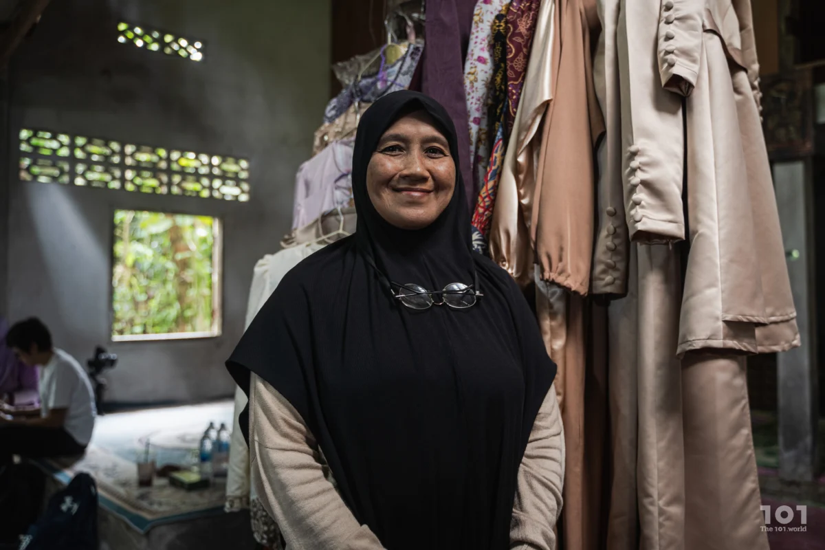 “มันไม่ต้องออกจากบ้านไปไหนไกล ทำงานจากที่บ้านก็ได้ ดูแลแม่ได้” ฟาดีราให้เหตุผล ส่วนมิสบะห์ยิ้มเขินๆ สมทบ ปล่อยให้พี่สาวอธิบายต่อว่าในโครงการอบรมทักษะ ทั้งคู่ได้เรียนตั้งแต่ “สอนพื้นฐาน วิธีวัดตัว วิธีสร้างแบบเสื้อผ้าว่าทำอย่างไร” ภายในเวลาห้าวัน และกลับมาพร้อมผลงานจากชั้นเรียนเป็นชุดกระโปรงแขนยาวสีไข่ไก่คนละตัว ที่นิสูนีดาคะยั้นคะยอให้พวกเธอหยิบจากราวแขวนออกมาอวดแขก