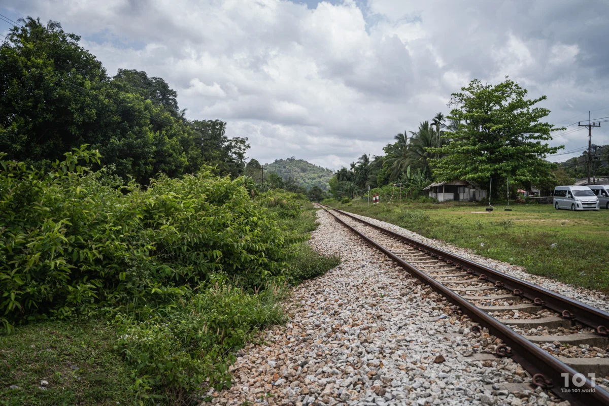จุดที่รถตู้สองคันเริ่มชะลอจอด เป็นเพียงลานหญ้ากว้างๆ สีเขียวอ่อนกระดำกระด่างเป็นหย่อมน้ำตาลจากความแห้งเหี่ยว ถัดไปเป็นทางรถไฟวางพาดเหนือลานหินกรวดยาวสุดลูกหูลูกตา และถัดจากนั้น ล้วนเห็นแต่ต้นไม้รกครึ้ม บ้างเป็นพุ่มพง บ้างเป็นต้นสูง มองปราดเดียวยากจะบอกได้ว่าพื้นที่ด้านในยังมีชาวบ้านตั้งถิ่นฐาน เป็นส่วนหนึ่งของชุมชนหมู่ที่ 9 บ้านสะโล ตำบลมะรือโบตก จังหวัดนราธิวาส