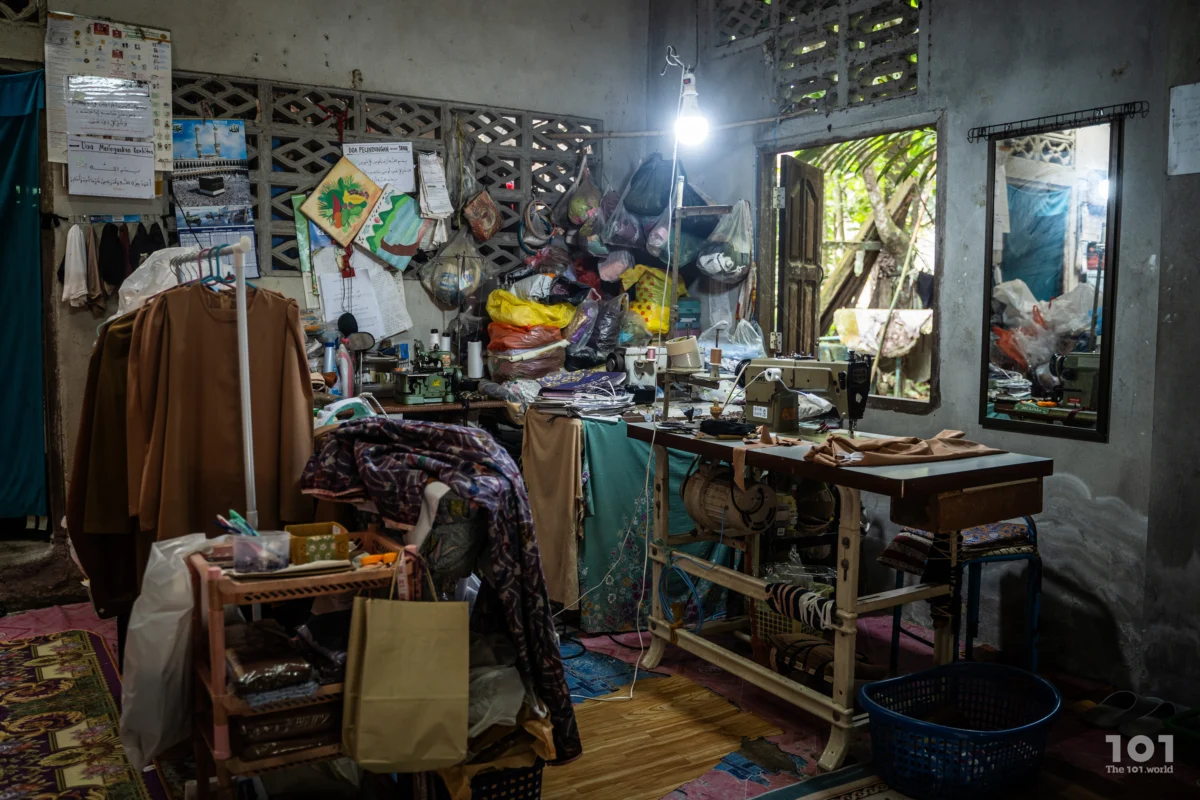 “ก็มีงานบ้าง ไม่มีบ้าง” เมาะซูยอมรับ “ช่วงที่มีงานจะไม่ออกไปไหนเลย จะไม่นอน อย่างงานแต่ง อาจจะสั่งเย็บสิบชุด เอาภายในสามวัน แม่ก็จะไม่นอน พักแค่แป๊บๆ กินข้าว ละหมาด แล้วก็กลับมาเย็บต่อ ไม่ไปไหน”
