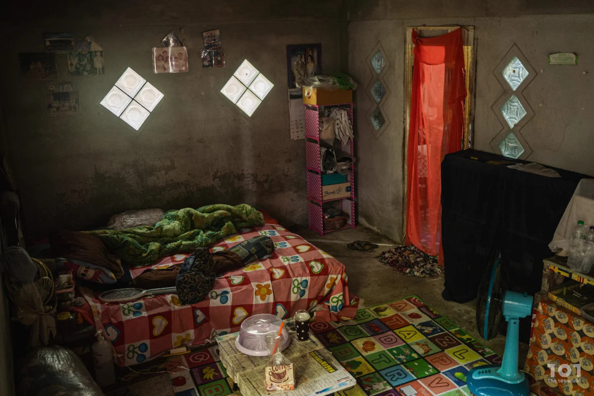 ใจจริงก็อยากมีพื้นที่บ้านมากกว่านี้ – เธอกล่าวพลางชี้ให้ดูพื้นที่ฟากหนึ่งติดกับห้องโถง ประตูผ้าสองผืนกั้นห้องสองห้องจากสายตาคนภายนอก ห้องหนึ่งเป็นของลูกสาว ห้องหนึ่งสำหรับลูกชาย ส่วนแม่อาศัยปูฟูกนอนหน้าห้อง โดยมีเพียงพัดลมตั้งพื้นหนึ่งตัวเป็นเพื่อนในคืนฤดูร้อน “นี่ลูกก็โตๆ กันแล้ว ถ้ามีกำลังพอ จะสร้างห้องนอนให้คนละห้อง นี่ยังเบียดกันอยู่” เมาะซูหัวเราะเสียงแผ่ว