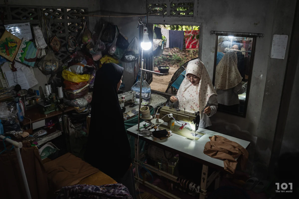 “ตอนนี้อยากได้จักรเพิ่ม” จะได้ช่วยกันรับงานมากขึ้น รายได้มากขึ้น ฟาดีรากล่าว – แม้ไม่รู้ว่าจะสามารถเก็บหอมรอมริบเพื่อซื้อจักรเย็บผ้าราคาครึ่งหมื่นได้เมื่อไหร่ แต่อย่างน้อย เธอก็ยังหวัง